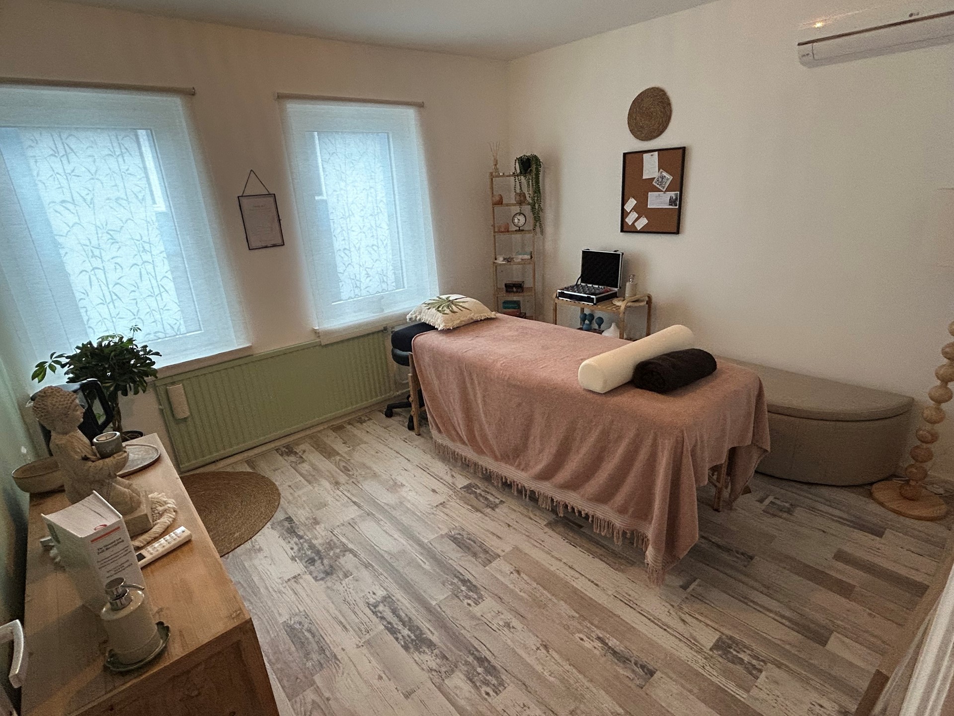 Slaapkamer 2: 3,40 x 3,15 met laminaatvloer en airco.
