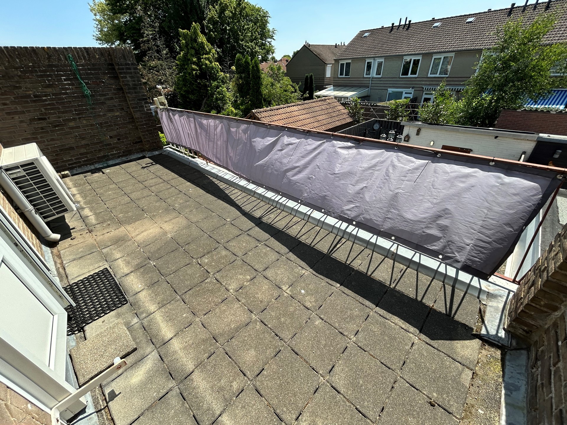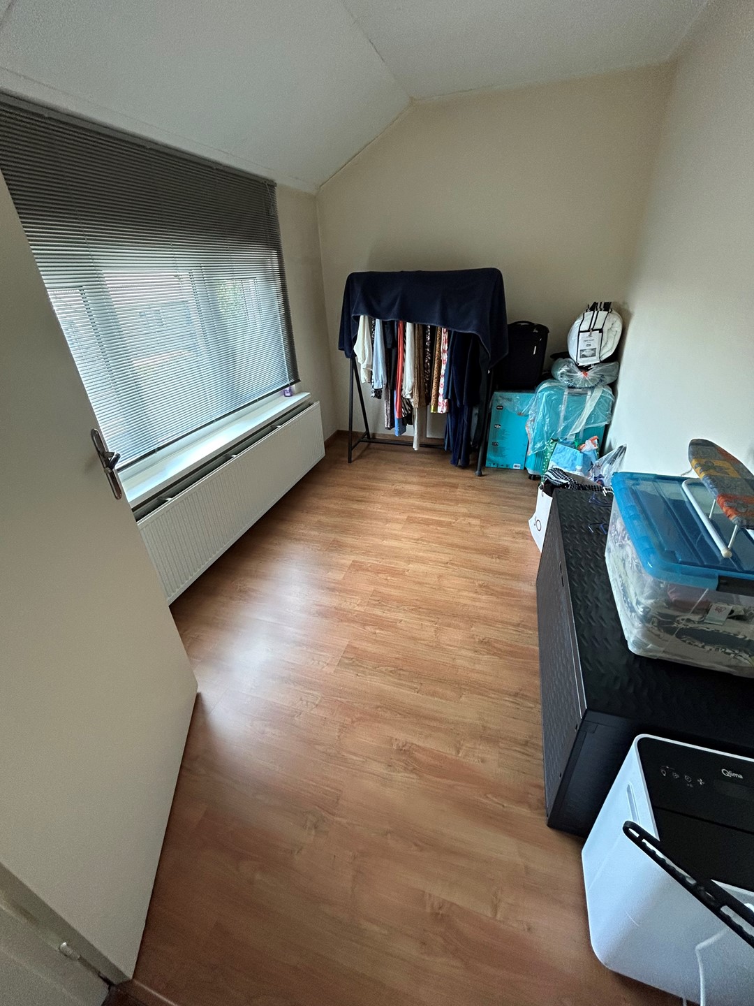 Slaapkamer 1: 3,75 x 3,60 met vloerbedekking op laminaatvloer, tv-aansluiting, openslaande deuren naar dakterras 6,20 x 2,40, airco, muurkast met cv-combiketel Remeha Avanta 28C van 2018 (eigendom).