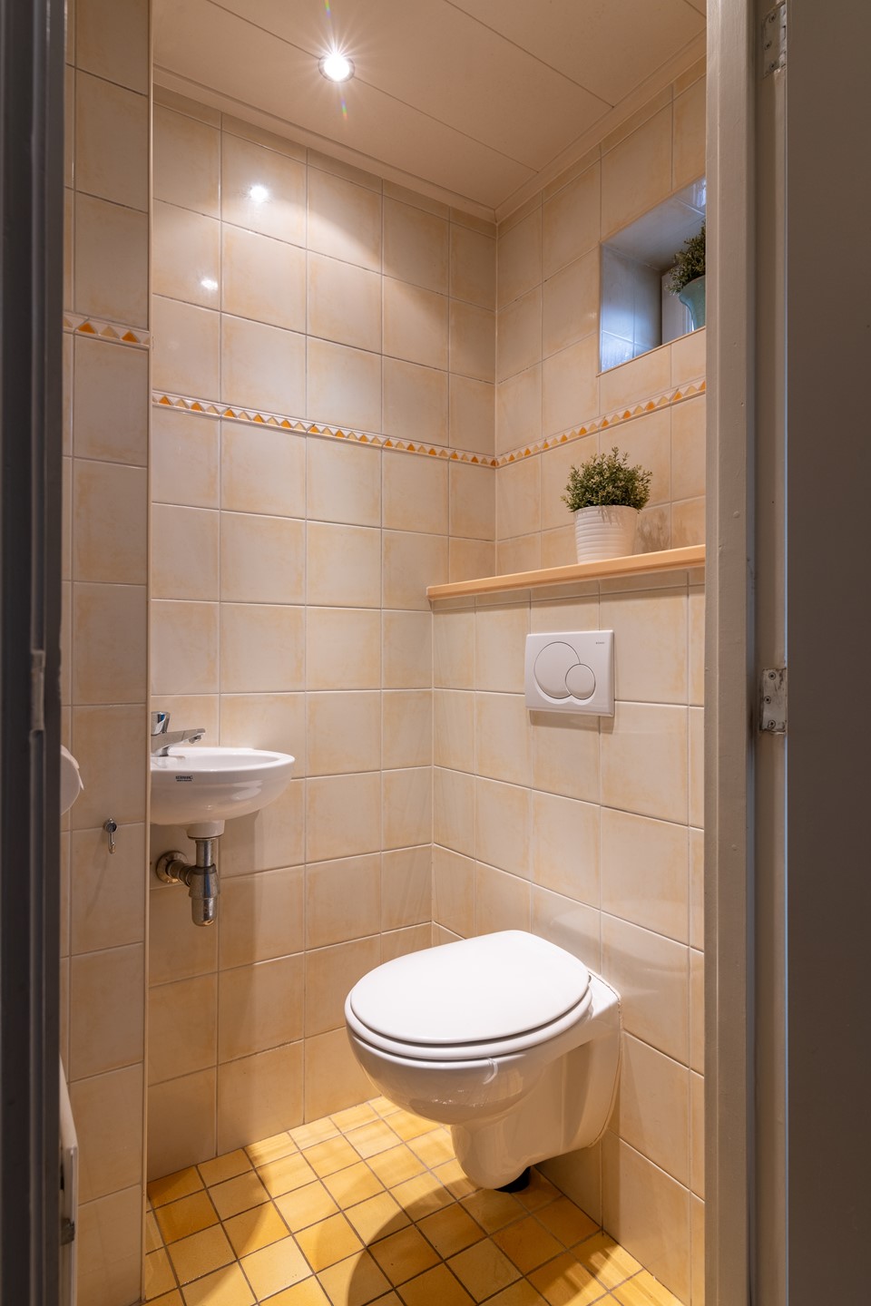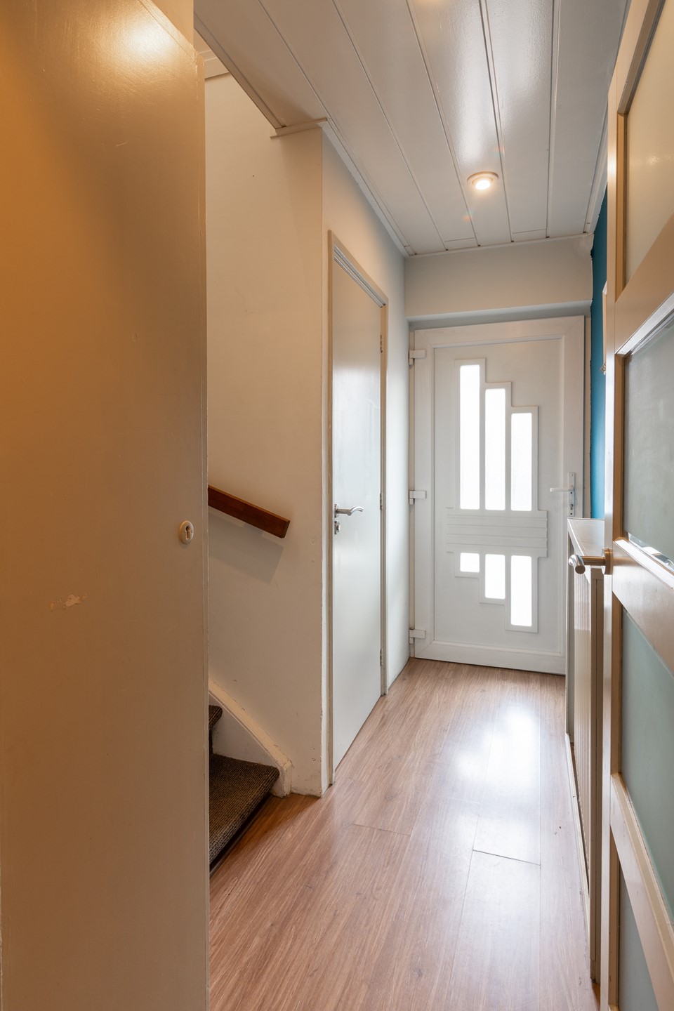 Via de verzorgde voortuin en de oprit met toegang tot de garage komt u bij de entree van de woning. In de hal treft u de garderobe, meterkast en een toilet met fonteintje. De doorlopende laminaatvloer zorgt voor een warme uitstraling.