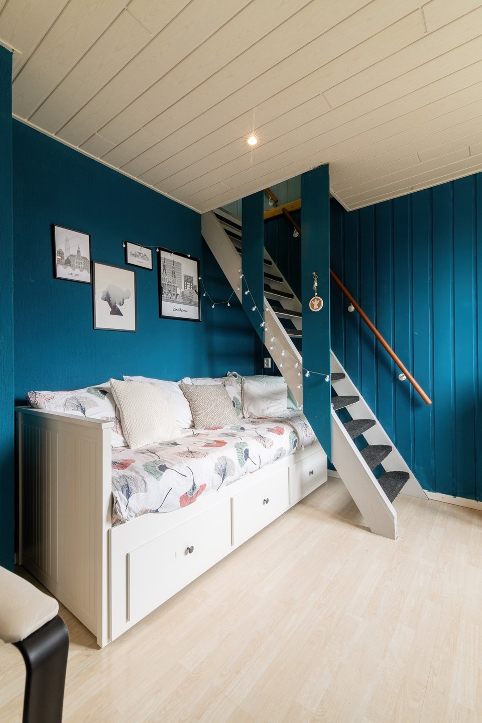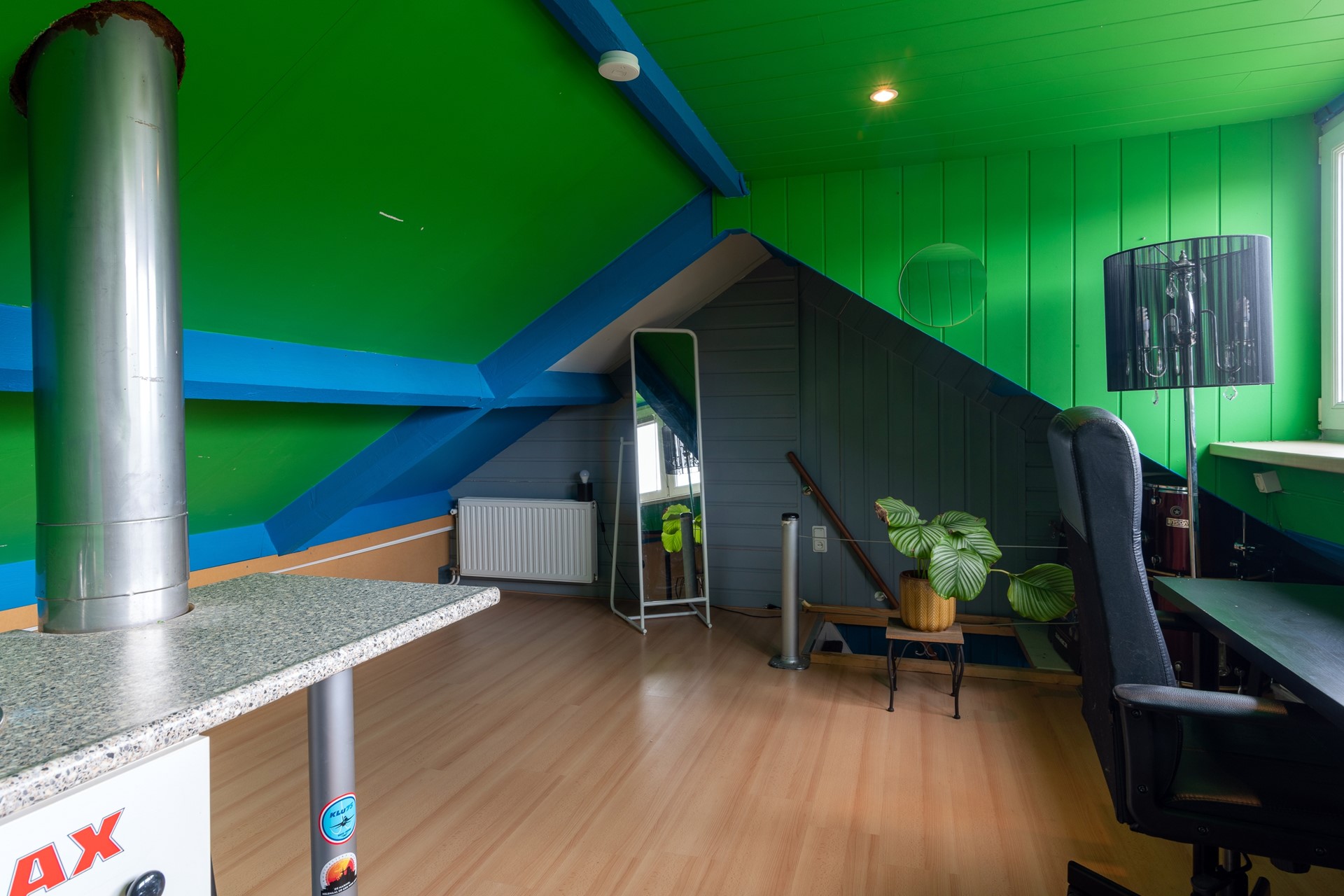 Via een vaste trap bereikt u de tweede verdieping. Deze ruimte is verrassend groot door de brede dakkapel, die zorgt voor veel daglicht. De ruimte is afgewerkt met een laminaatvloer en rolluik en is perfect in te richten als vierde slaapkamer, thuiskantoor of hobbyruimte. Hier bevindt zich ook de cv-installatie.