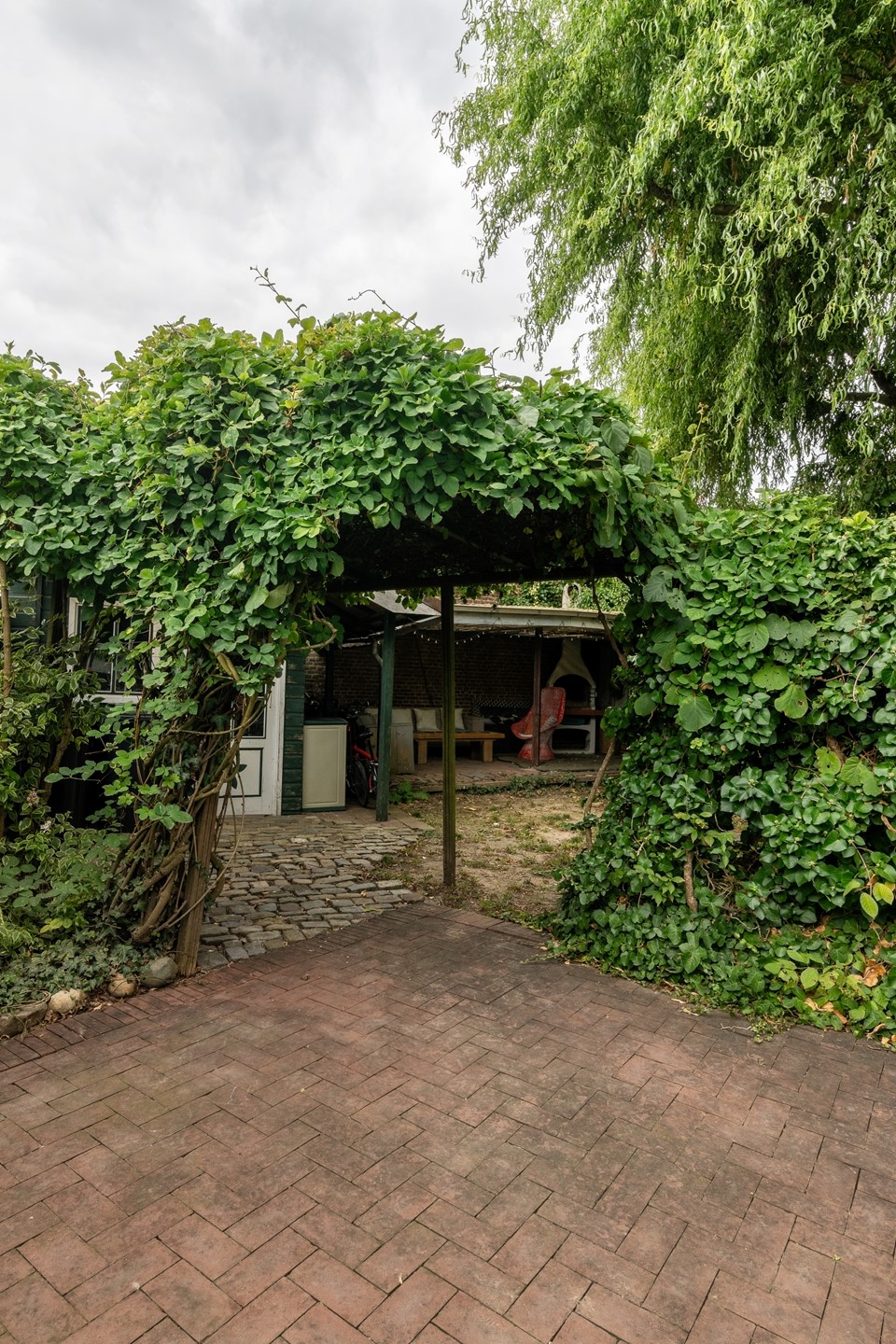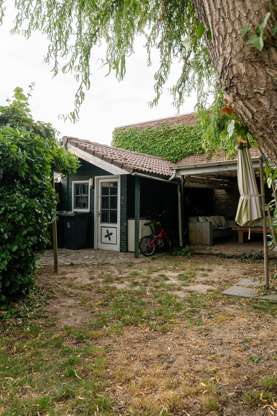 De achtertuin is een groene oase van rust en privacy. Het gazon, de volwassen beplanting en de bomen maken dit tot een plek waar u het hele jaar door kunt genieten. Er zijn meerdere terrassen, waarvan één overdekt is, zodat u bij elk weertype buiten kunt zitten. Het tuinhuis biedt ruimte voor het opbergen van tuingereedschap.