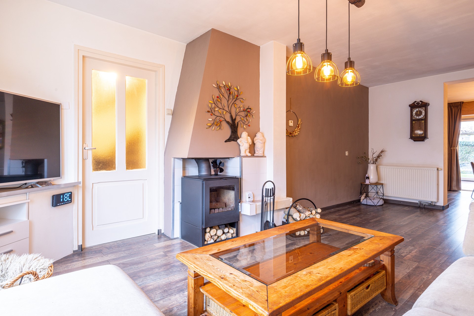 - Houtkachel in de woonkamer