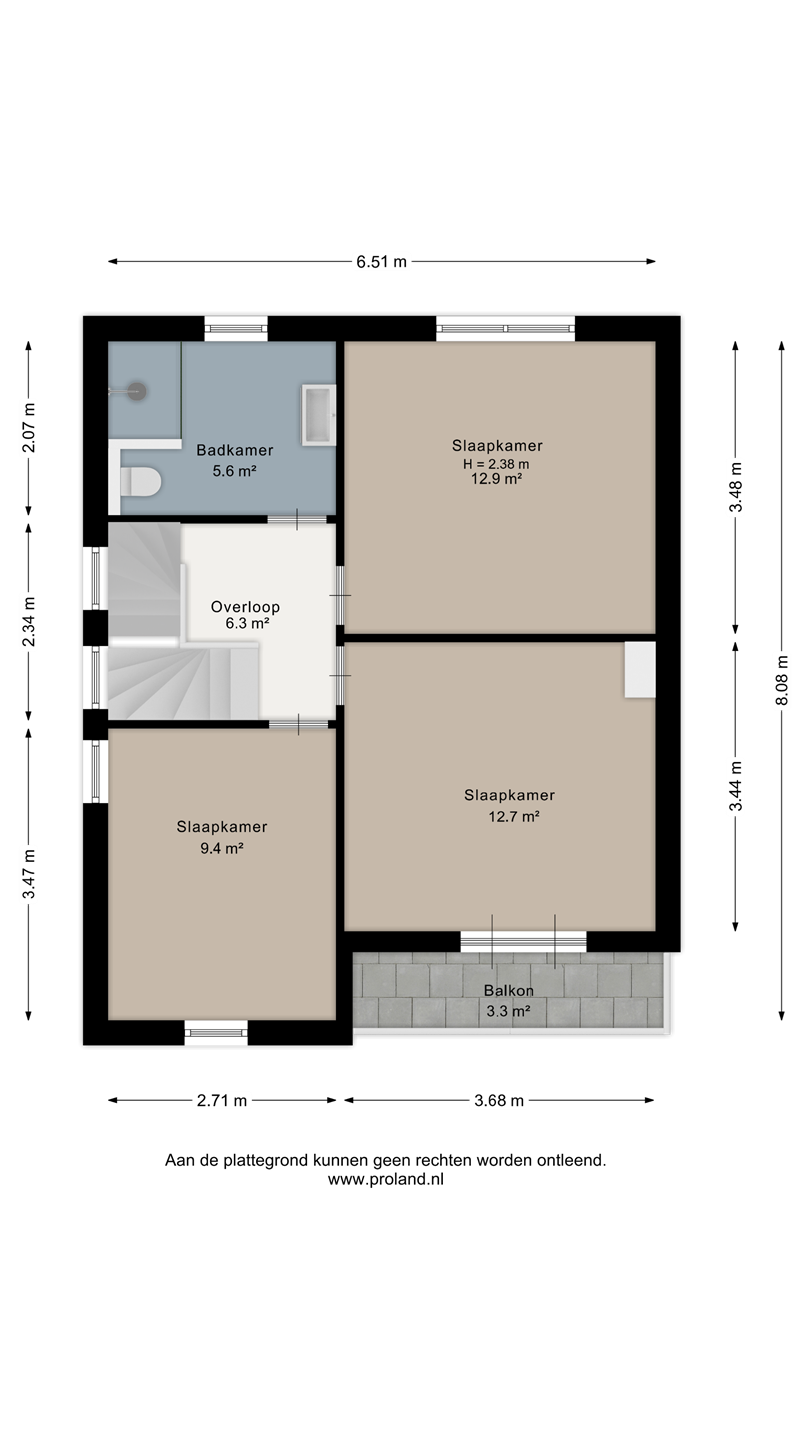 De overloop geeft toegang tot drie in grootte variërende slaapkamers, waarvan één met balkon. De badkamer is verzorgd en compleet uitgevoerd met douche, wastafel en tweede toilet.