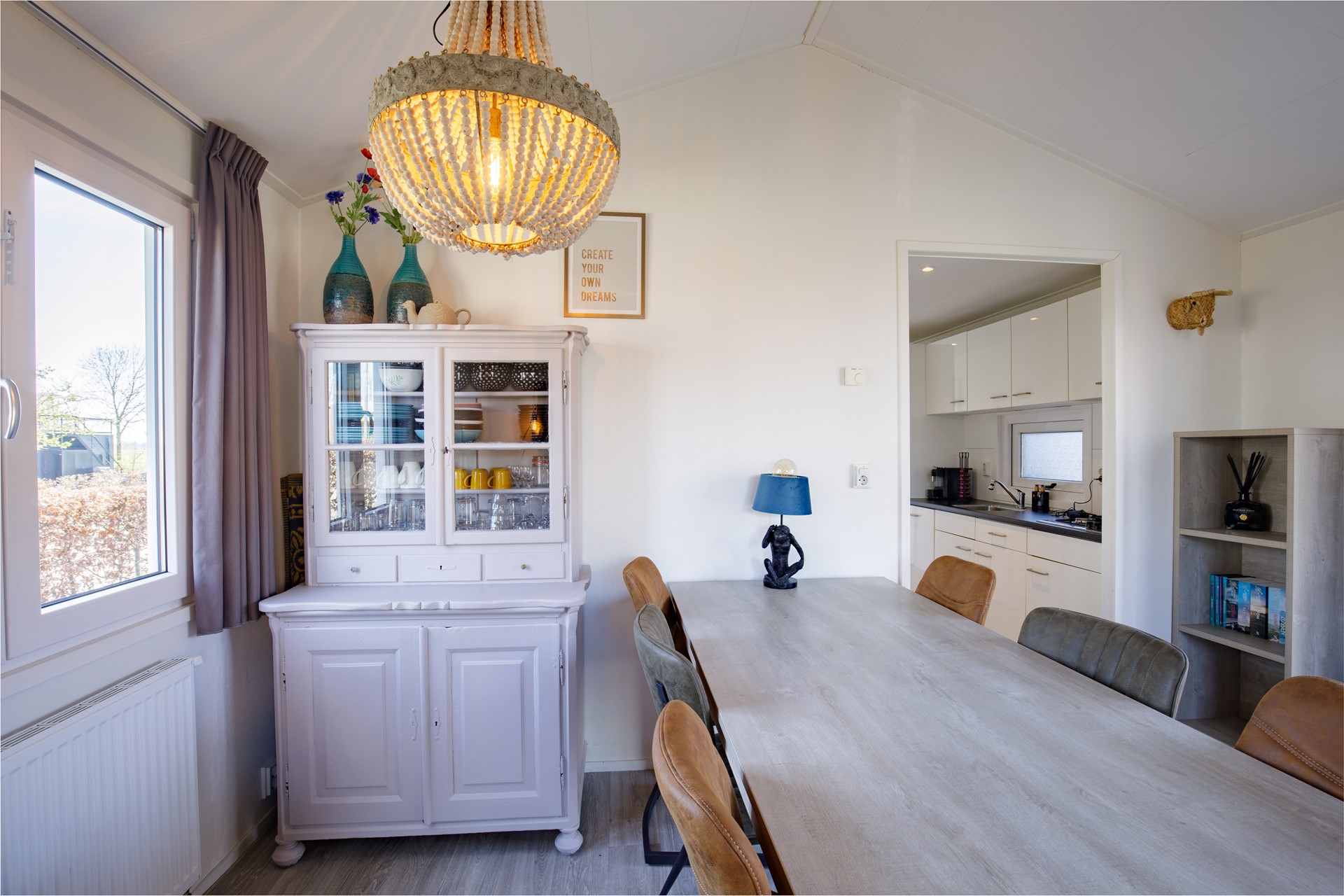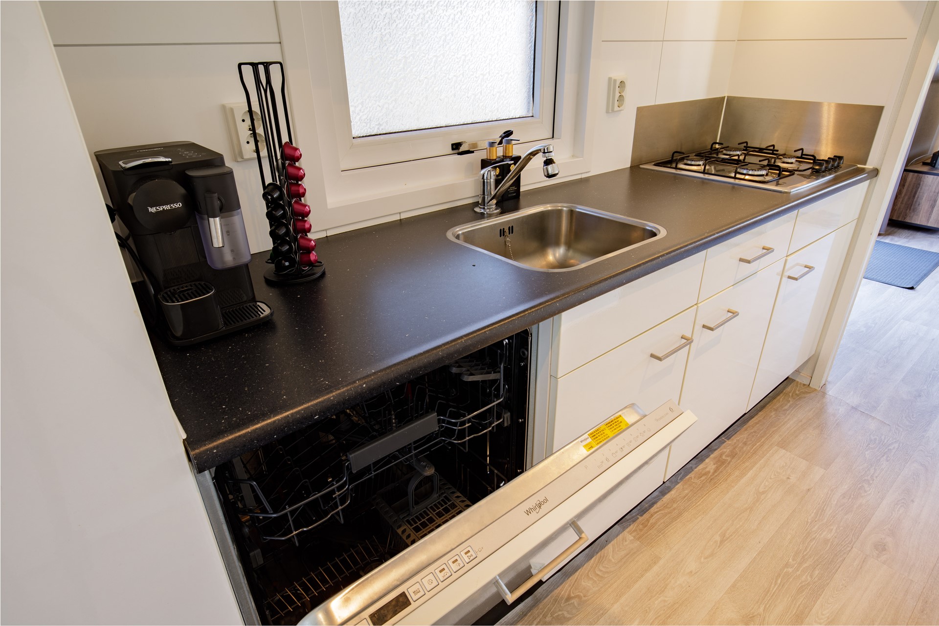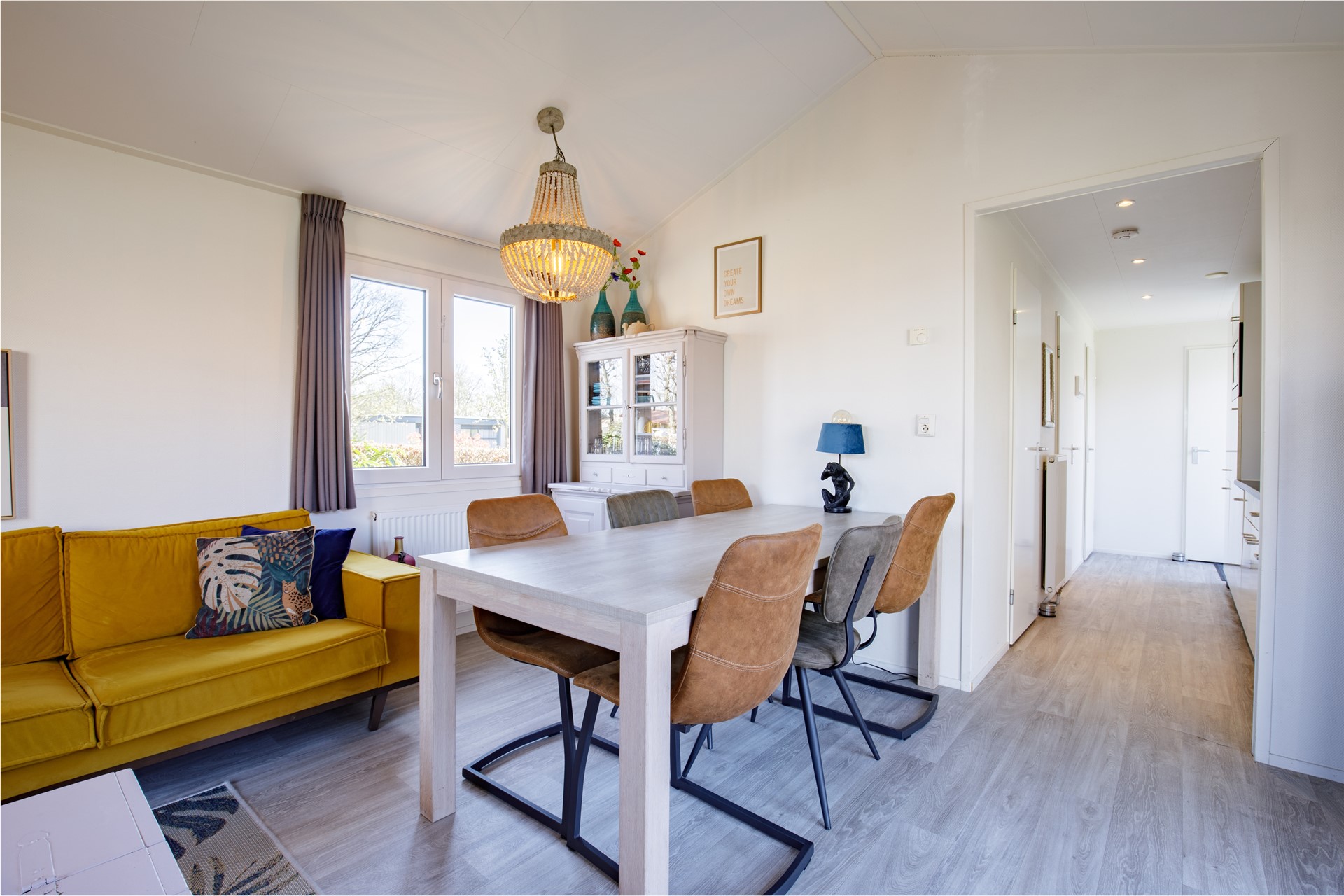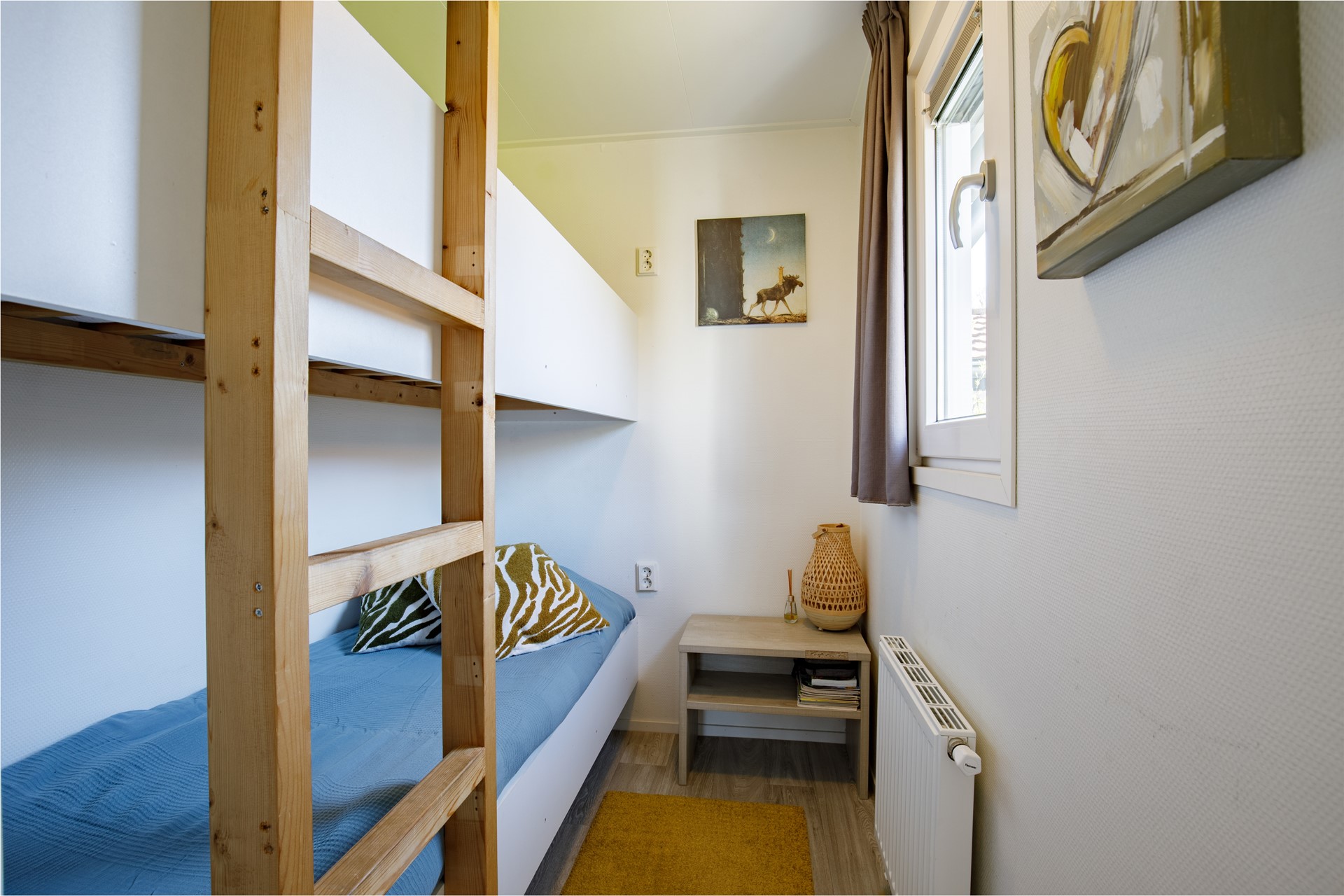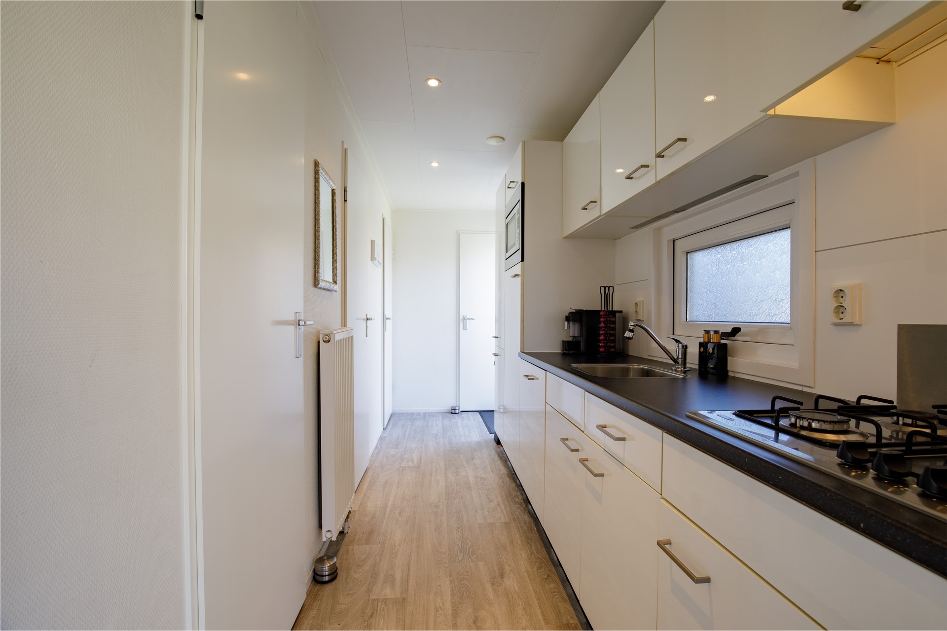 De woning beschikt over een lichte en moderne woonkamer met airconditioning. En wordt inclusief de prachtige meubels en inventaris aangeboden, waardoor je hier direct kunt genieten van je eigen vakantieplek nu de seizoen is begonnen! De moderne keuken is voorzien van diverse inbouwapparatuur, waaronder een gaskookplaat, combimagnetron en een koffiezetapparaat, vaatwasser, etc. De woning is voorzien van drie slaapkamers, waaronder een kamer met een stapelbed, een kamer met twee eenpersoonsbedden en de Masterbedroom met een tweepersoonsbed. Dankzij de praktische indeling en de comfortabele inrichting is de woning ideaal voor eigen gebruik, maar ook interessant voor recreatieve verhuur.