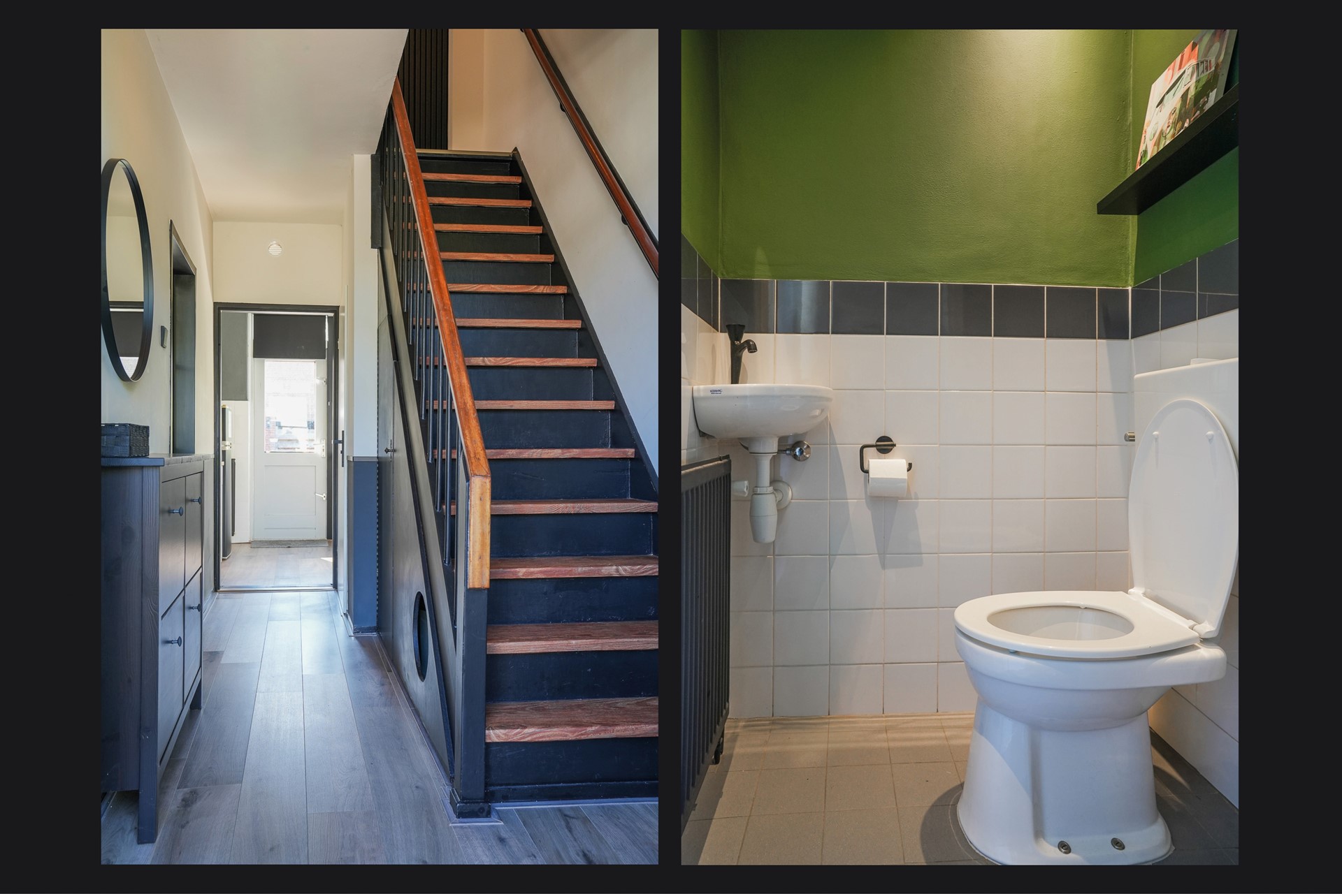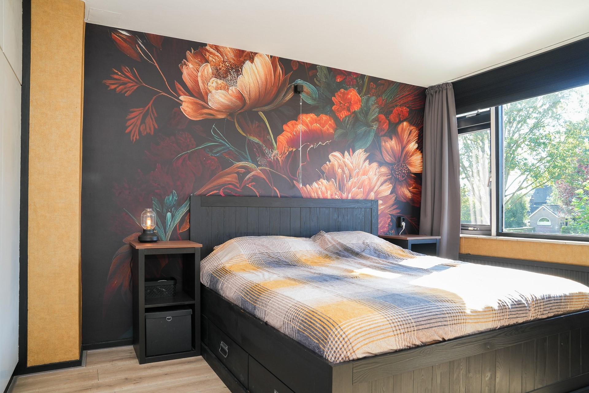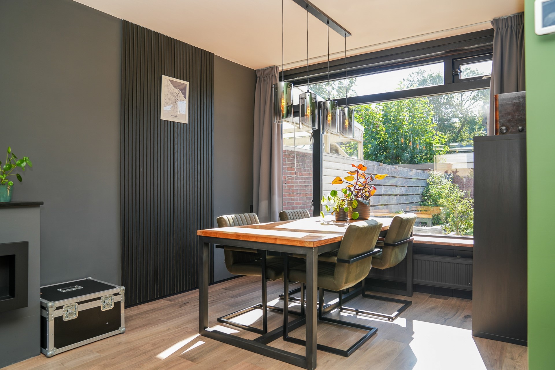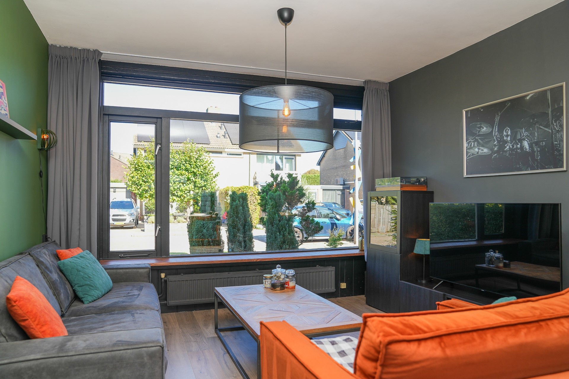 Je komt binnen in een nette hal met toegang tot het toilet, de berging onder de trap, de gerenoveerde trapopgang én de leefruimtes. De woonkamer is licht en uitnodigend, met grote raampartijen aan zowel de voor- als achterzijde. De gaskachel met schouw zorgt voor een warme sfeer, terwijl het stucwerk en de laminaatvloer voor een strakke afwerking zorgen.