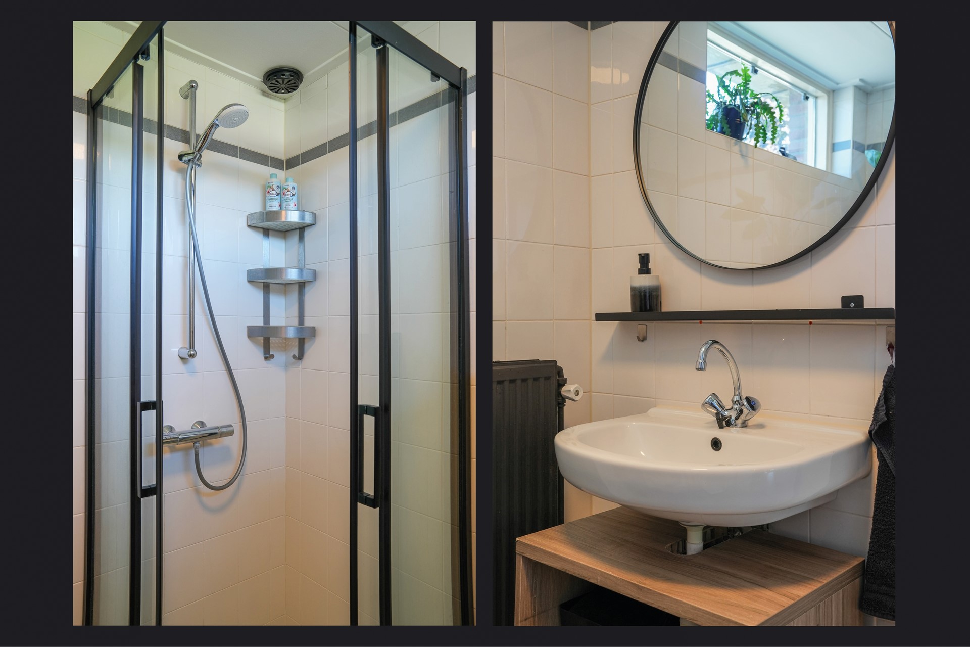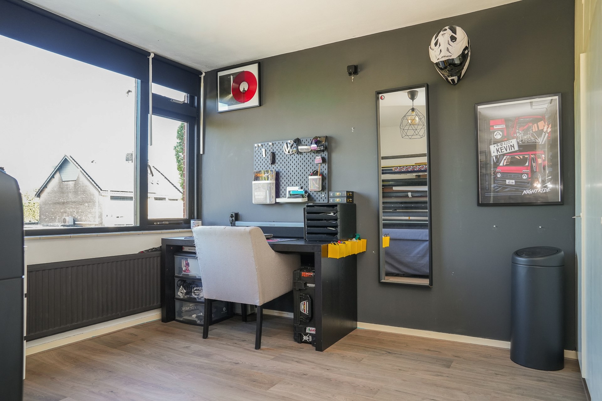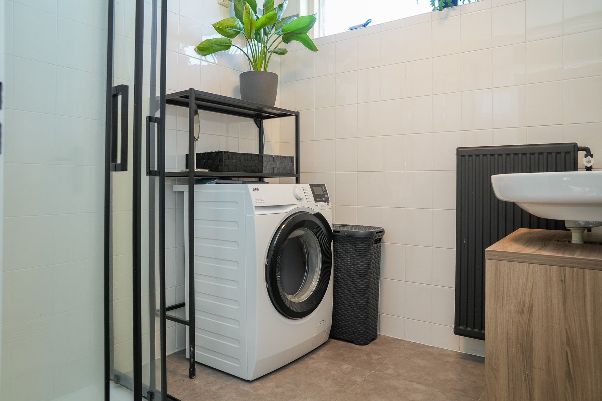 Op de eerste verdieping bevinden zich drie slaapkamers, waarvan twee zijn uitgerust met handige inbouwkasten. De badkamer is praktisch ingedeeld met een douchecabine, wastafel, radiator én de aansluiting voor de wasmachine. Ook hier is alles netjes afgewerkt met laminaat op de vloer (behalve in de badkamer).