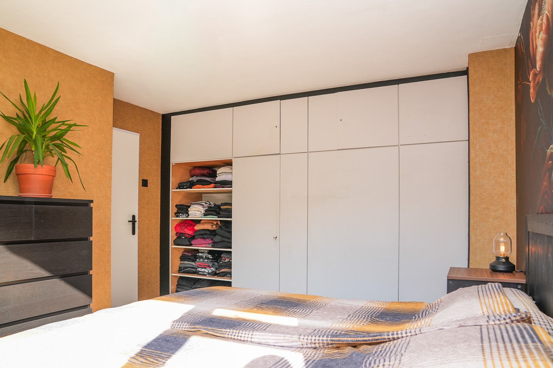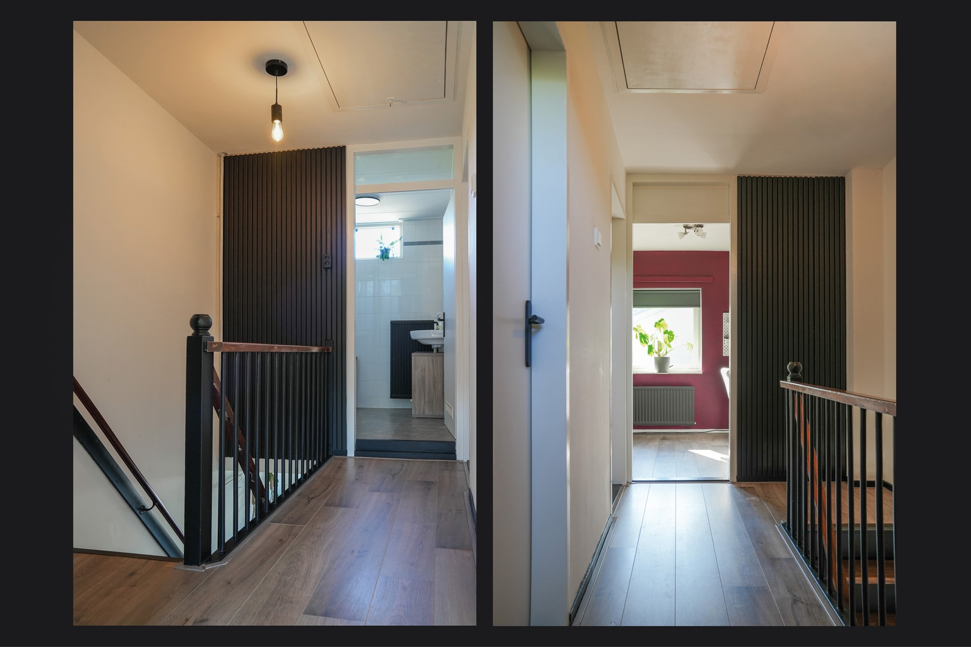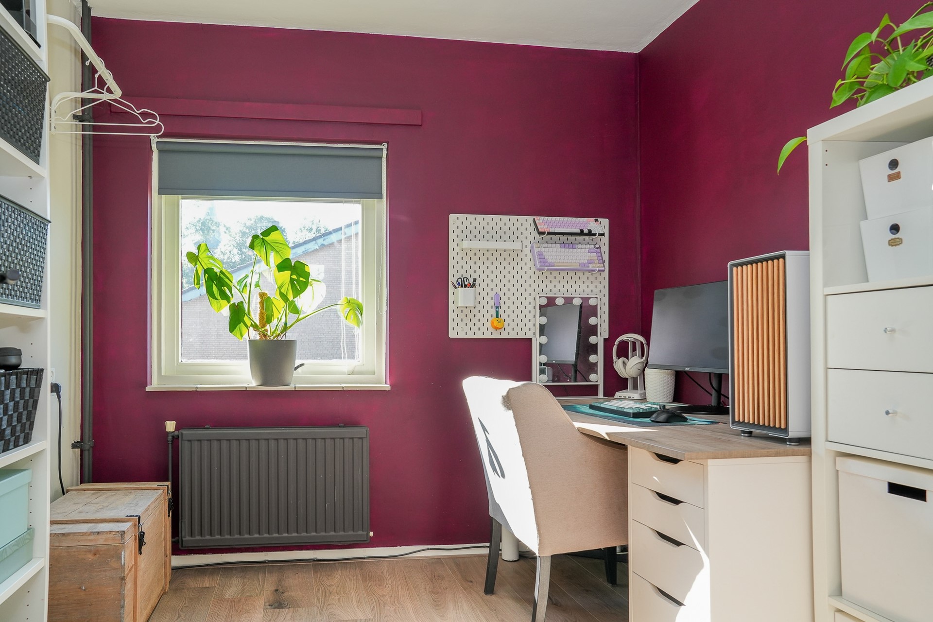 Op de eerste verdieping bevinden zich drie slaapkamers, waarvan twee zijn uitgerust met handige inbouwkasten. De badkamer is praktisch ingedeeld met een douchecabine, wastafel, radiator én de aansluiting voor de wasmachine. Ook hier is alles netjes afgewerkt met laminaat op de vloer (behalve in de badkamer).