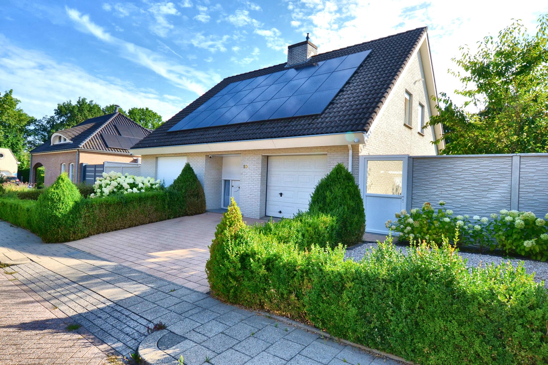 Overal in spouwmuur ingebouwde rolluiken waarvan schuifpui en voordeur elektrisch bedienbaar.