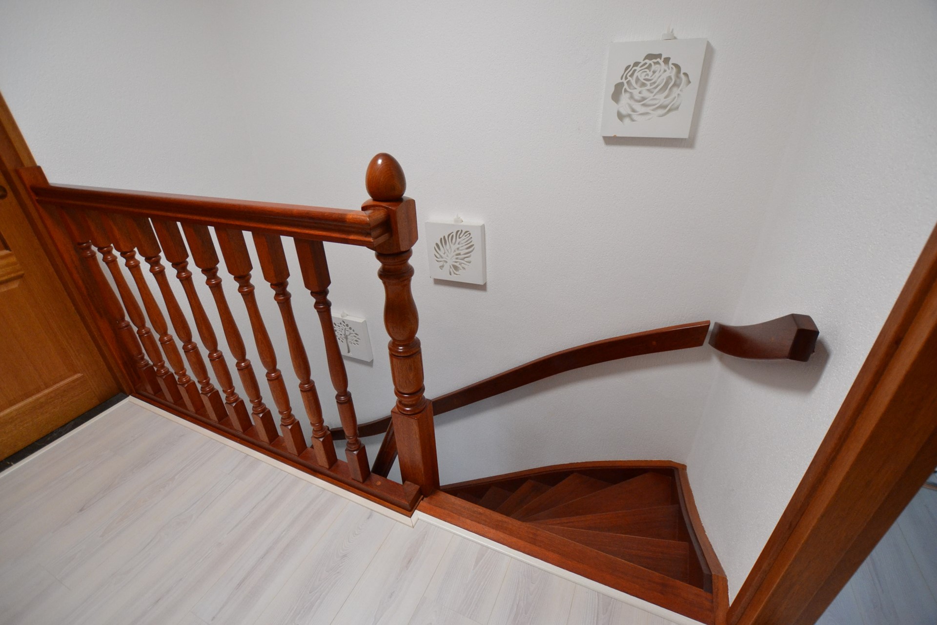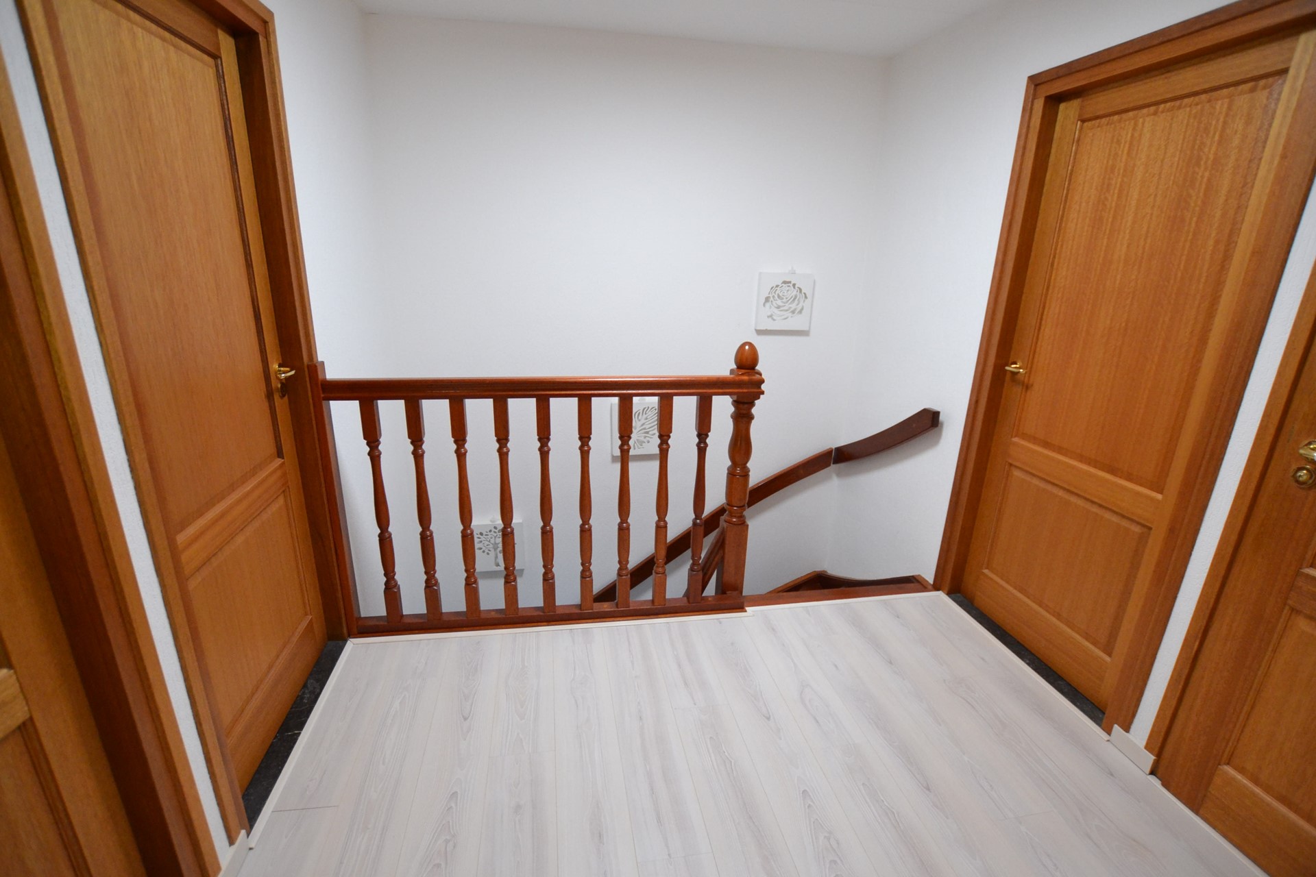 Overloop 2,50 x 1,90 met laminaatvloer en vlizotrap naar zolderverdieping.