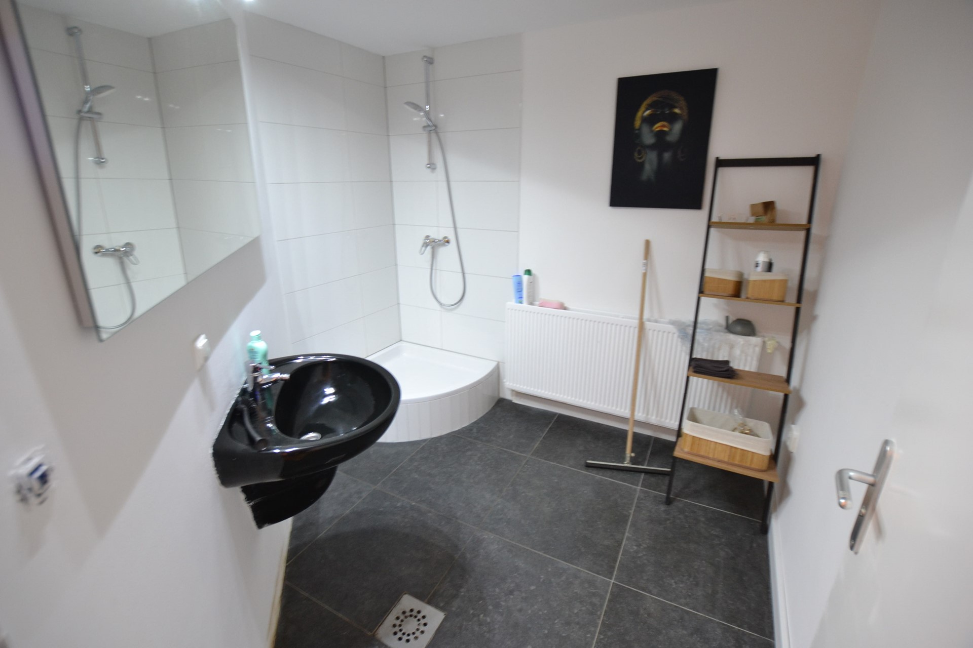 Ruim appartement op begane grond en bijbehorende kelder met ruime woonkamer met open keuken, hoogglans aanbouwkeuken, 4 slaapkamers, badkamer met hoekligbad met whirlpool en toilet, in kelder tweede badkamer met douche, wasruimte, kunststof kozijnen met dubbele beglazing en gelegen aan een drukke weg in centrum Chevremont, gemeente Kerkrade.
