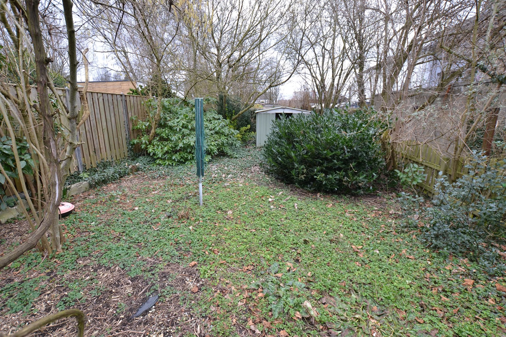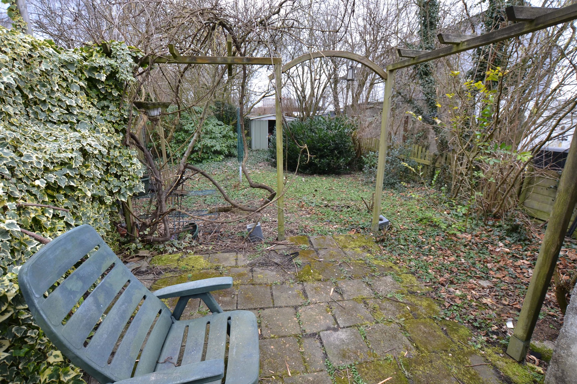 Achtertuin 20,00 x 7,50 met terras met overkapping 5,00 x 3,20 met verlichting en twee buitenbergingen 2,70 x 2,00 en 2,15 x 2,00.