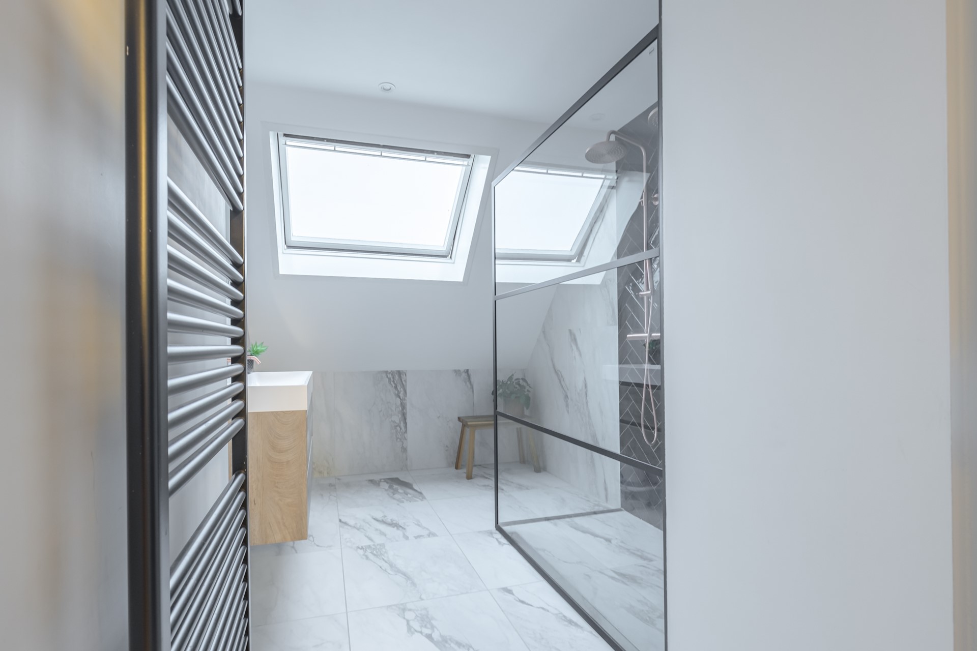 Daarnaast is er een ruime extra slaapkamer die perfect kan functioneren als logeer-, werk- of hobbykamer. Door de ruimte en hoogte voelt de verdieping licht en ruimtelijk aan.