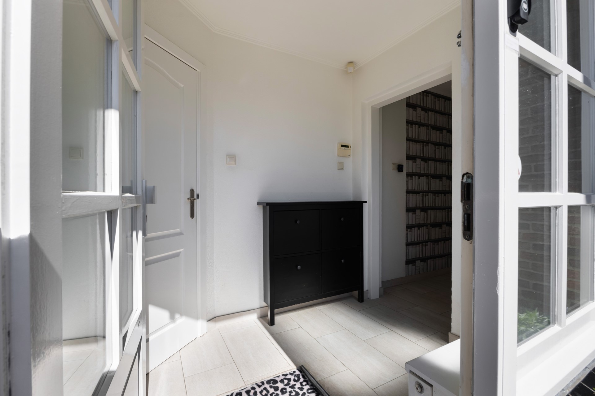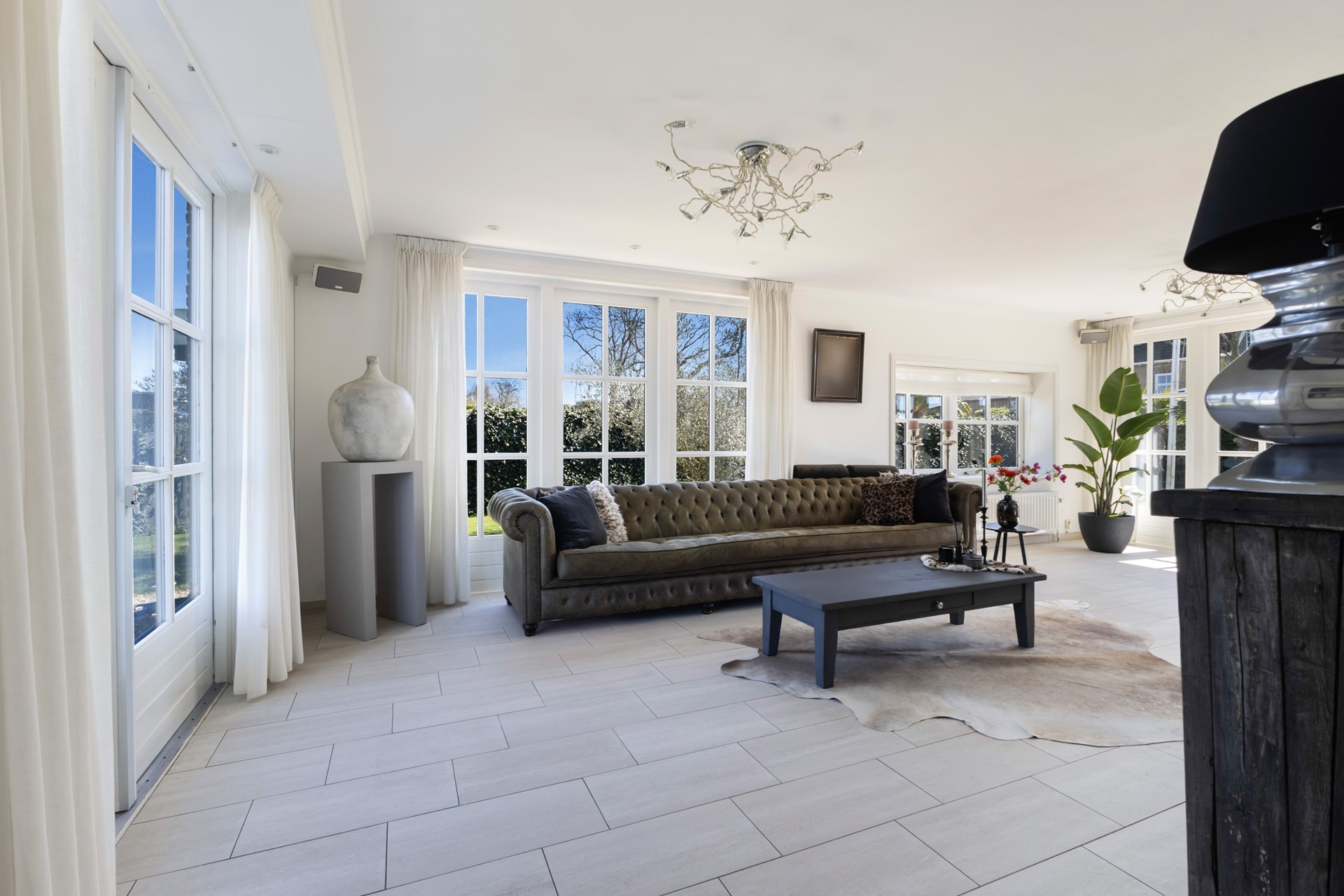 De entree geeft toegang tot een ruime hal met garderobe en toilet. De royale woonkamer van circa 60 m² is licht en ruim dankzij de grote raampartijen en openslaande deuren naar de tuin. De strak gestuukte wanden en plafonds, gecombineerd met de plavuizenvloer met vloerverwarming, zorgen voor een comfortabele en verzorgde uitstraling. Op de begane grond zijn screens aanwezig op een deel van de kozijnen, wat bijdraagt aan extra zonwering en wooncomfort.
