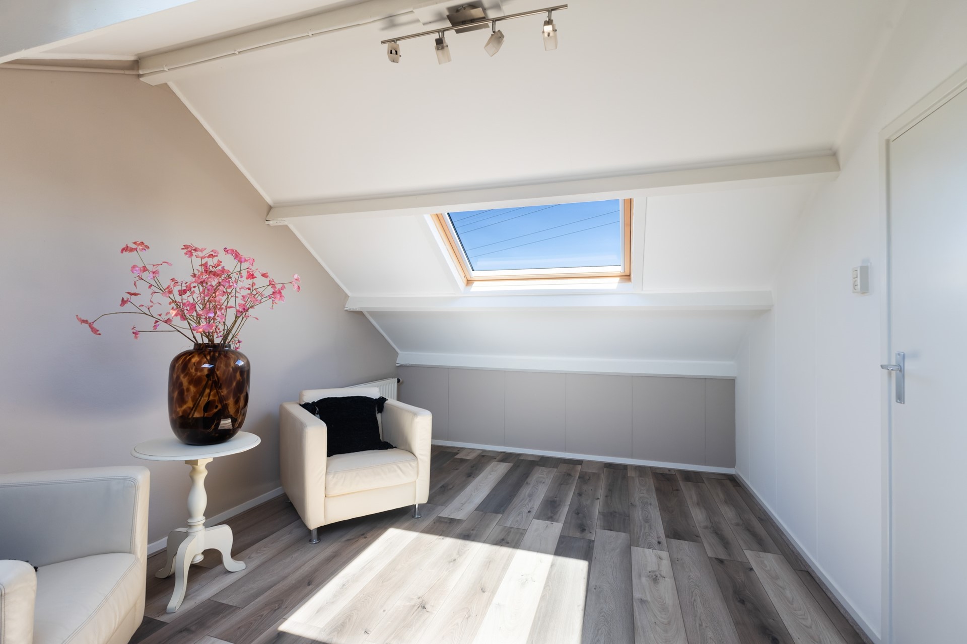De tweede verdieping beschikt over nog twee ruime slaapkamers, beide voorzien van dakramen. De overloop biedt toegang tot een praktische opbergkast. In totaal telt de woning vijf volwaardige slaapkamers.