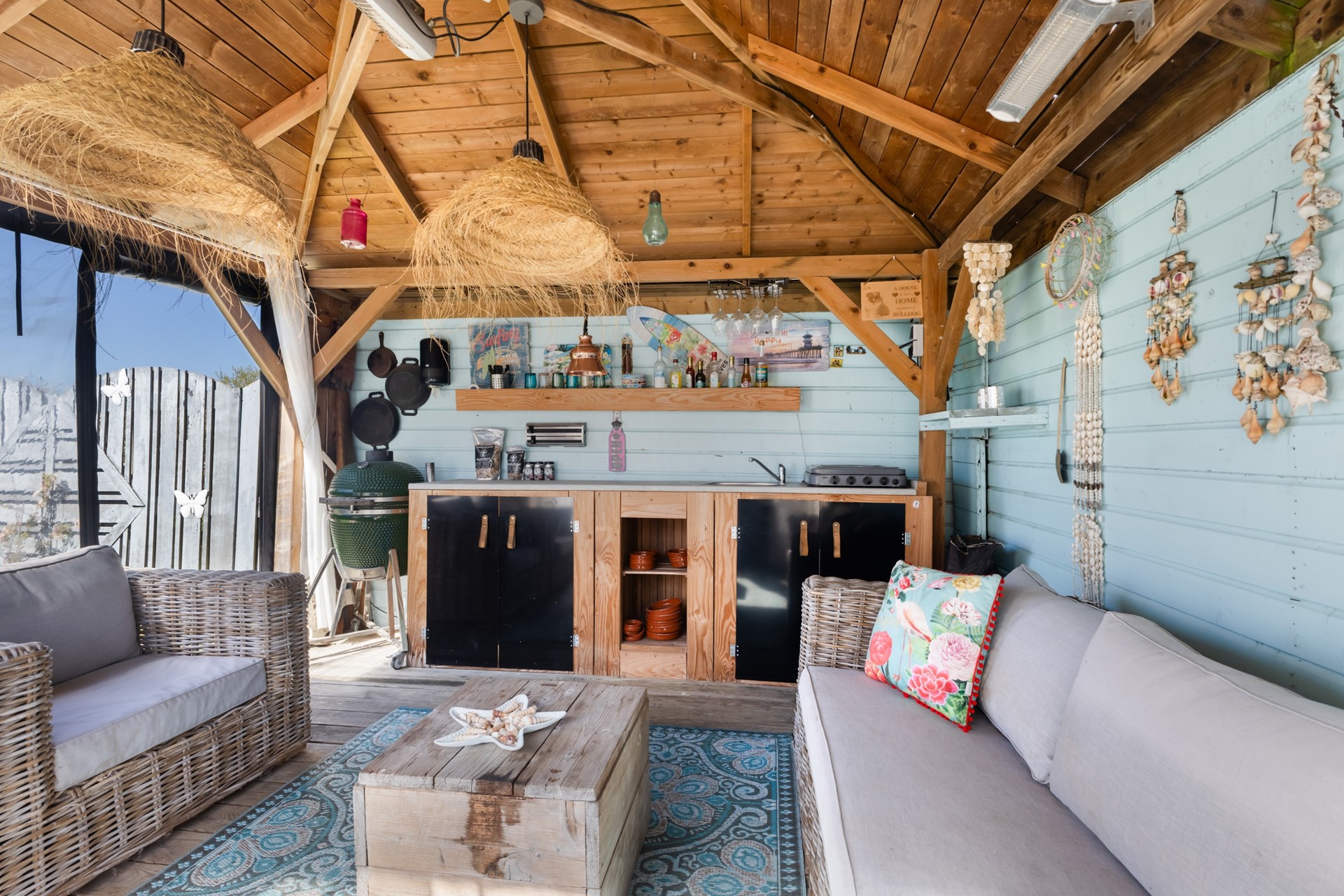 Daarnaast is er een tuinhuis met buitenkeuken, een sfeervolle plek om samen te komen, te barbecueën en volop te genieten van het buitenleven. Het grote grasveld biedt veel ruimte om te spelen en te ontspannen, met rondom een vrij en beschut gevoel.