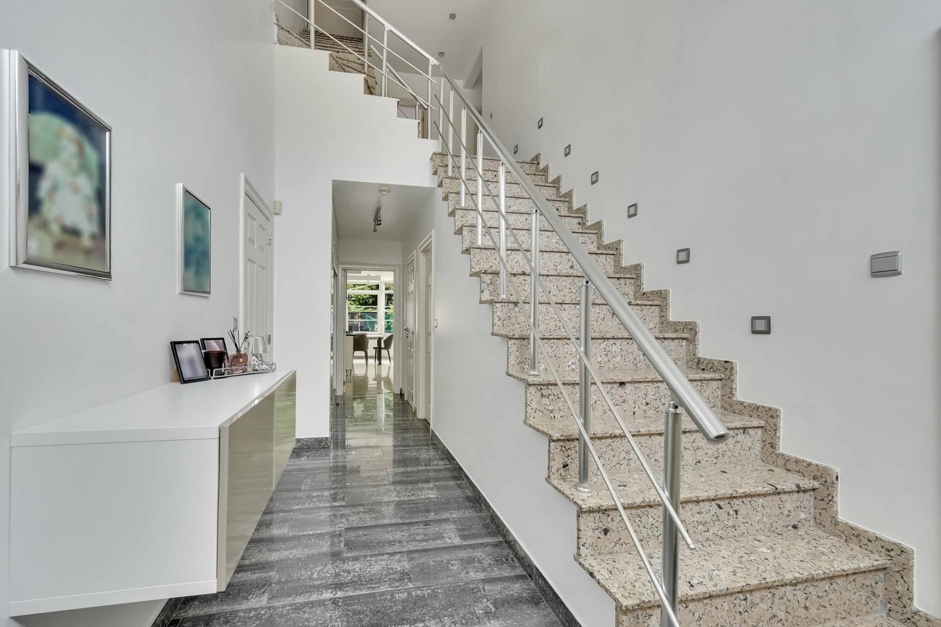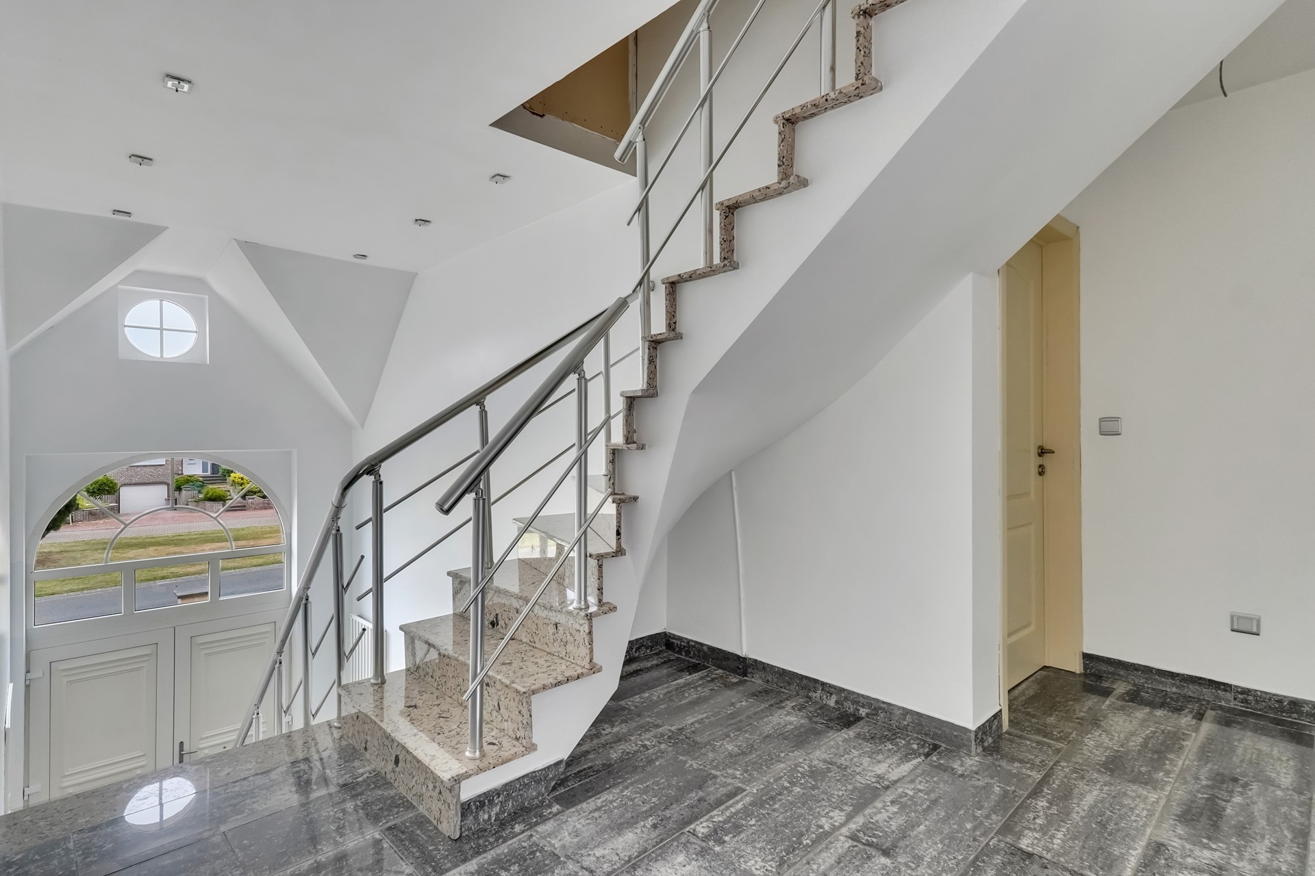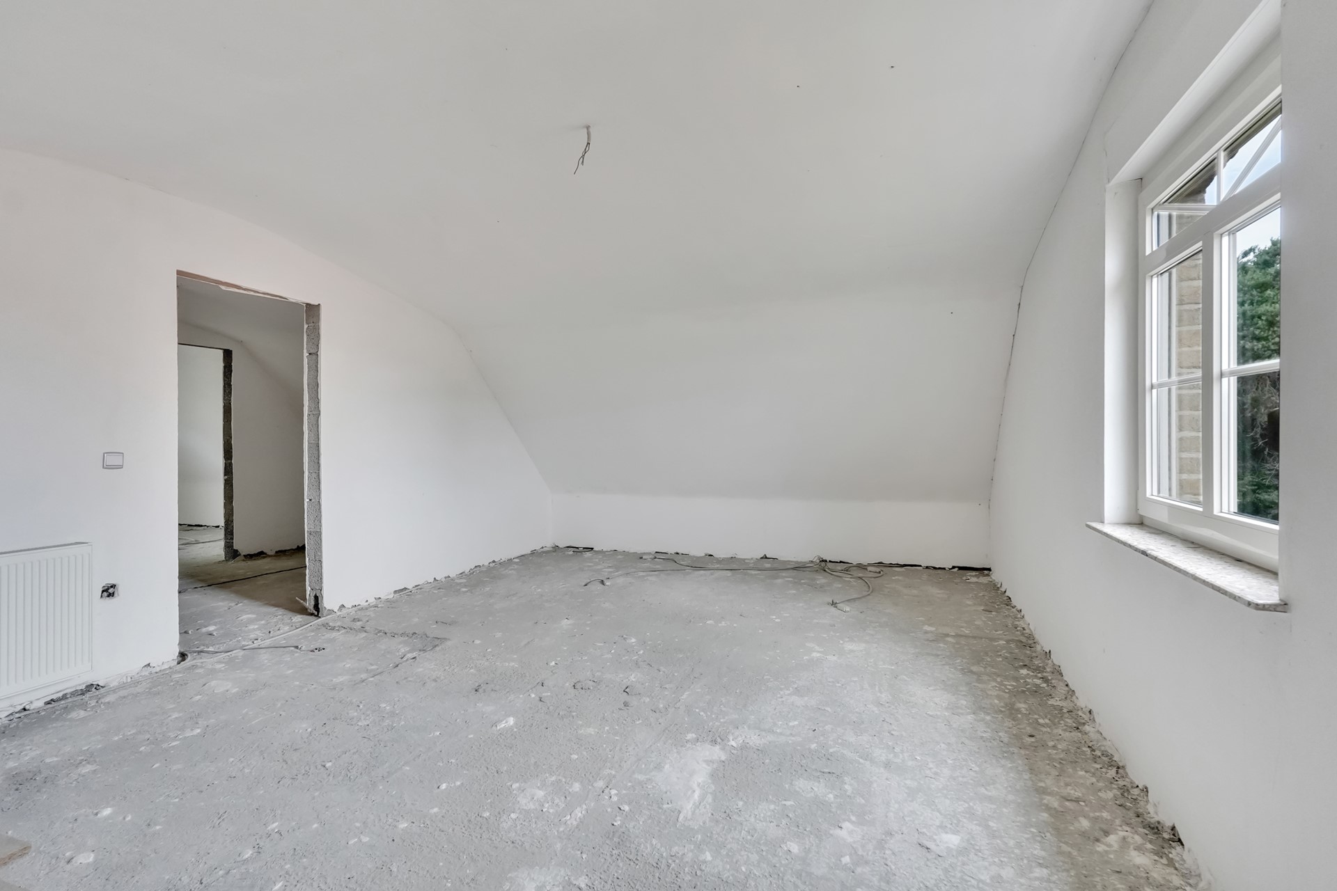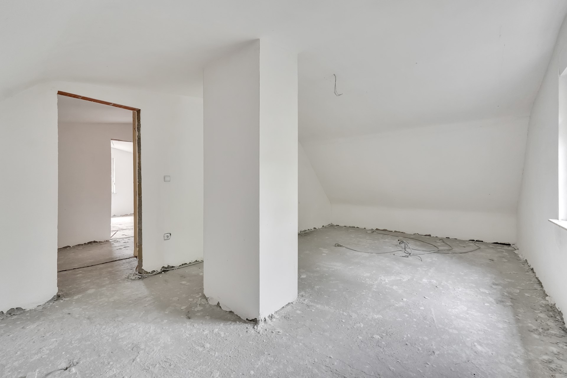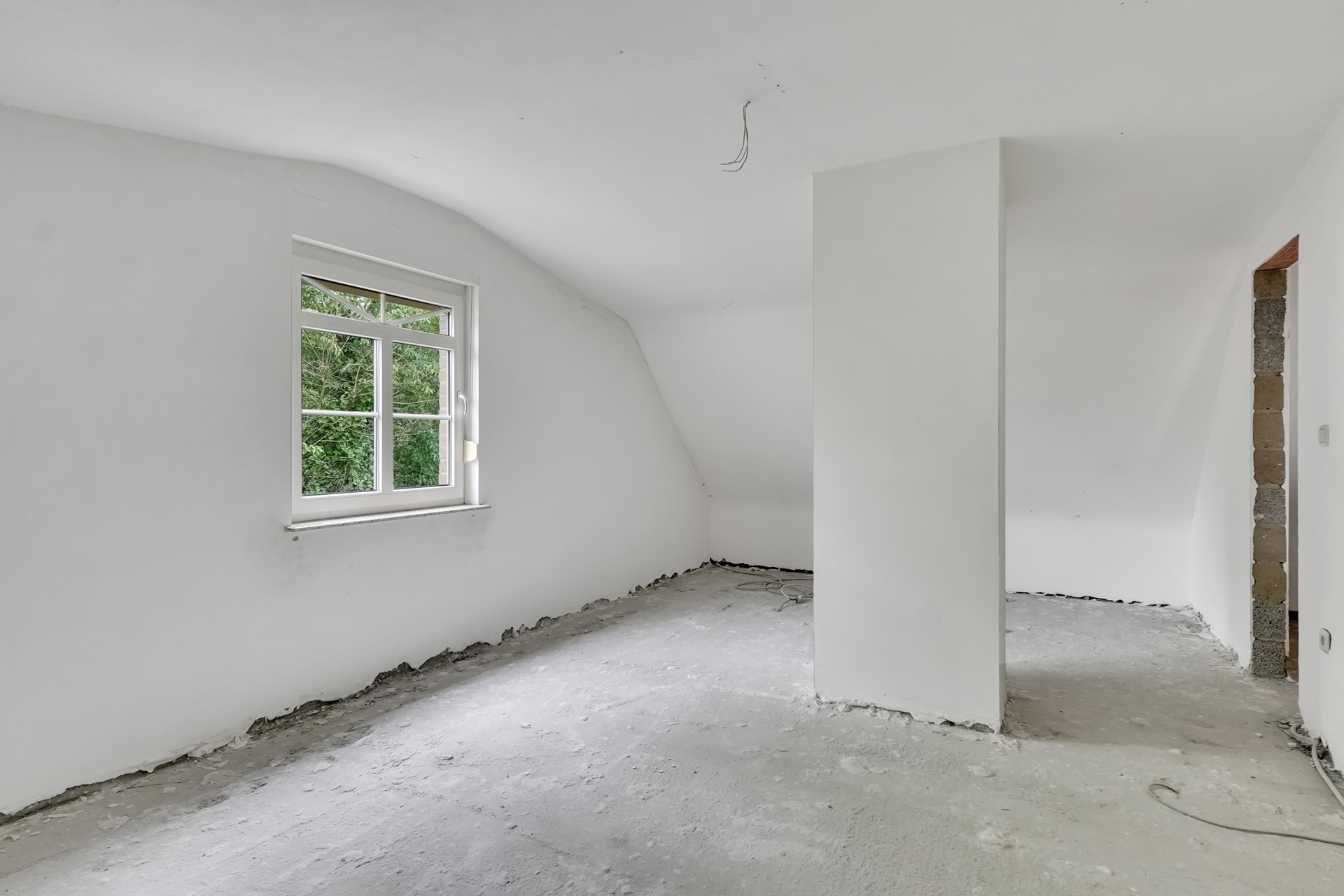 Een vaste trap leidt naar de bovenste verdieping, waar drie afzonderlijke ruimtes aanwezig zijn. Twee ervan kunnen perfect ingericht worden als extra slaapkamers, hobbykamers of bureauruimte. De derde ruimte is voorbereid op het installeren van een extra badkamer.