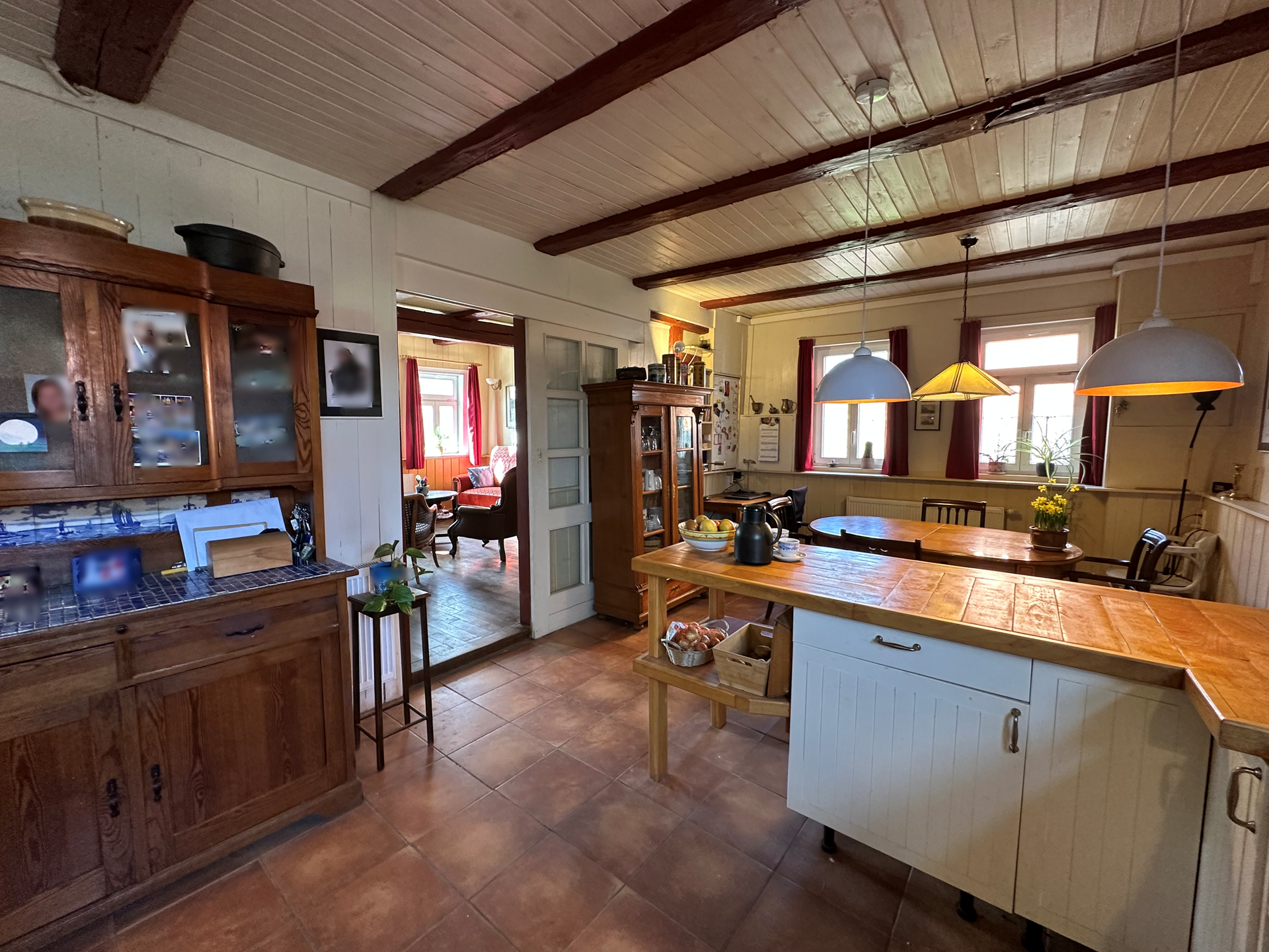 De oorspronkelijke houten vakwerkconstructie, de houten wandafwerkingen en de traditionele verhoudingen vormen nog altijd het hart van de woning. Tegelijkertijd is het huis aangepast aan de eisen van nu, met moderne installaties, duurzame oplossingen en een indeling die meegroeit met verschillende levensfasen.