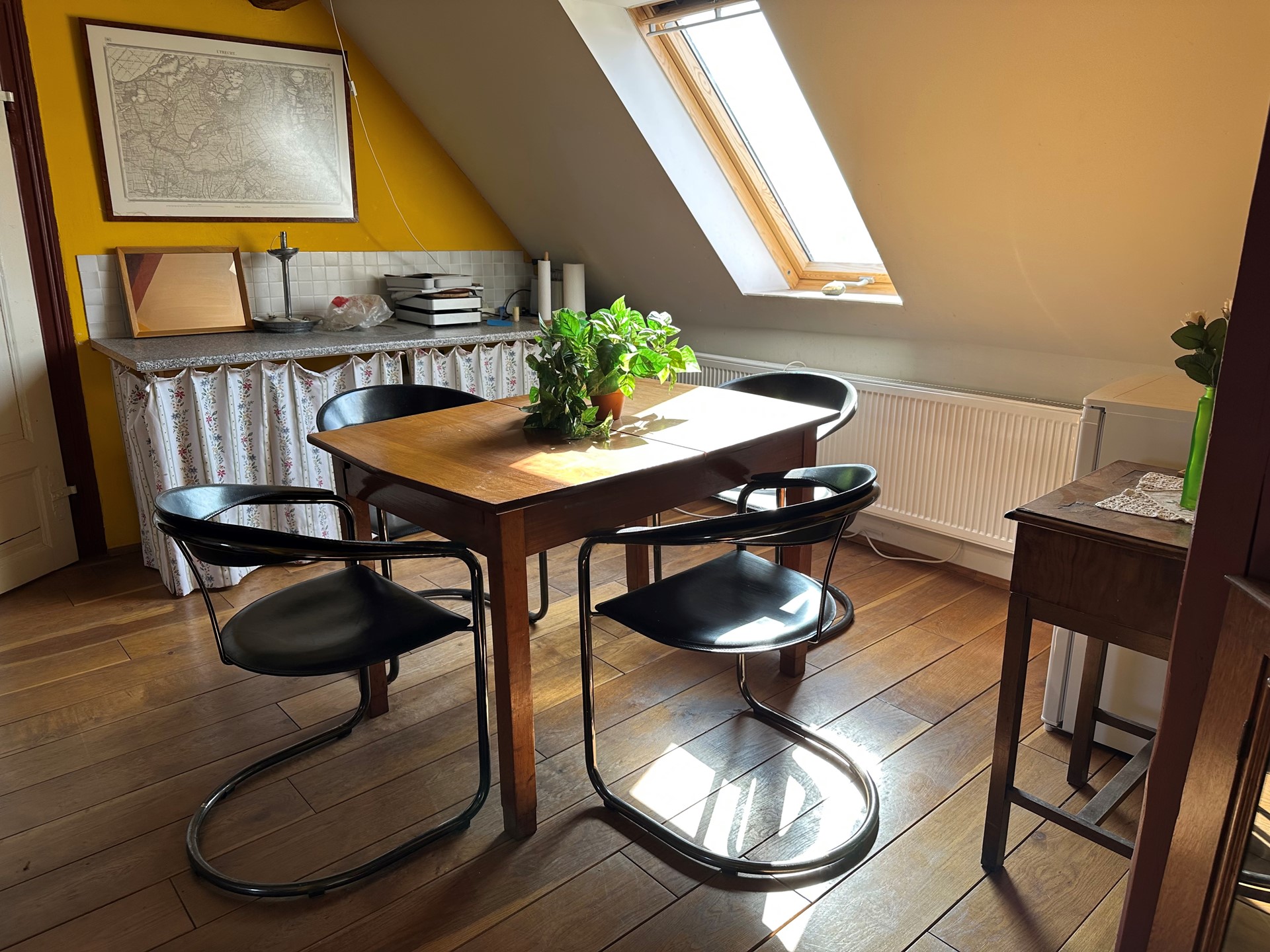 Ook op technisch vlak is de woning met zorg en oog voor de toekomst gemoderniseerd. In de afgelopen jaren zijn diverse duurzame voorzieningen toegevoegd, waaronder zonnepanelen en een luchtwarmtepomp voor de warmwatervoorziening. Het verwarmingssysteem is vervolgens volledig vernieuwd en uitgevoerd als een moderne houtpelletinstallatie: een efficiënte en milieuvriendelijke oplossing die goed aansluit bij het karakter en de schaal van het huis. Op middellange termijn vraagt de zuidelijke historische vakwerkgevel om onderhoud, passend bij het eigenaarschap van een monument, maar met behoud van waarde en uitstraling.