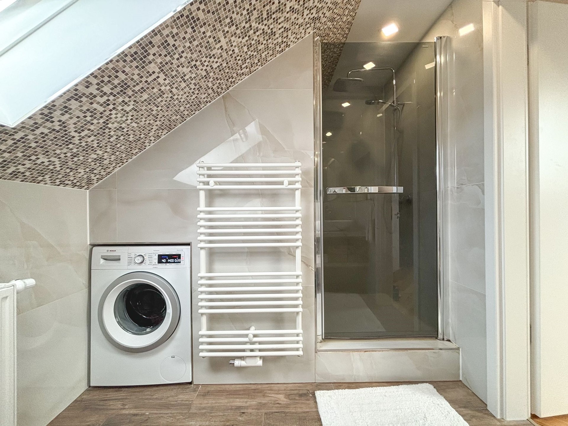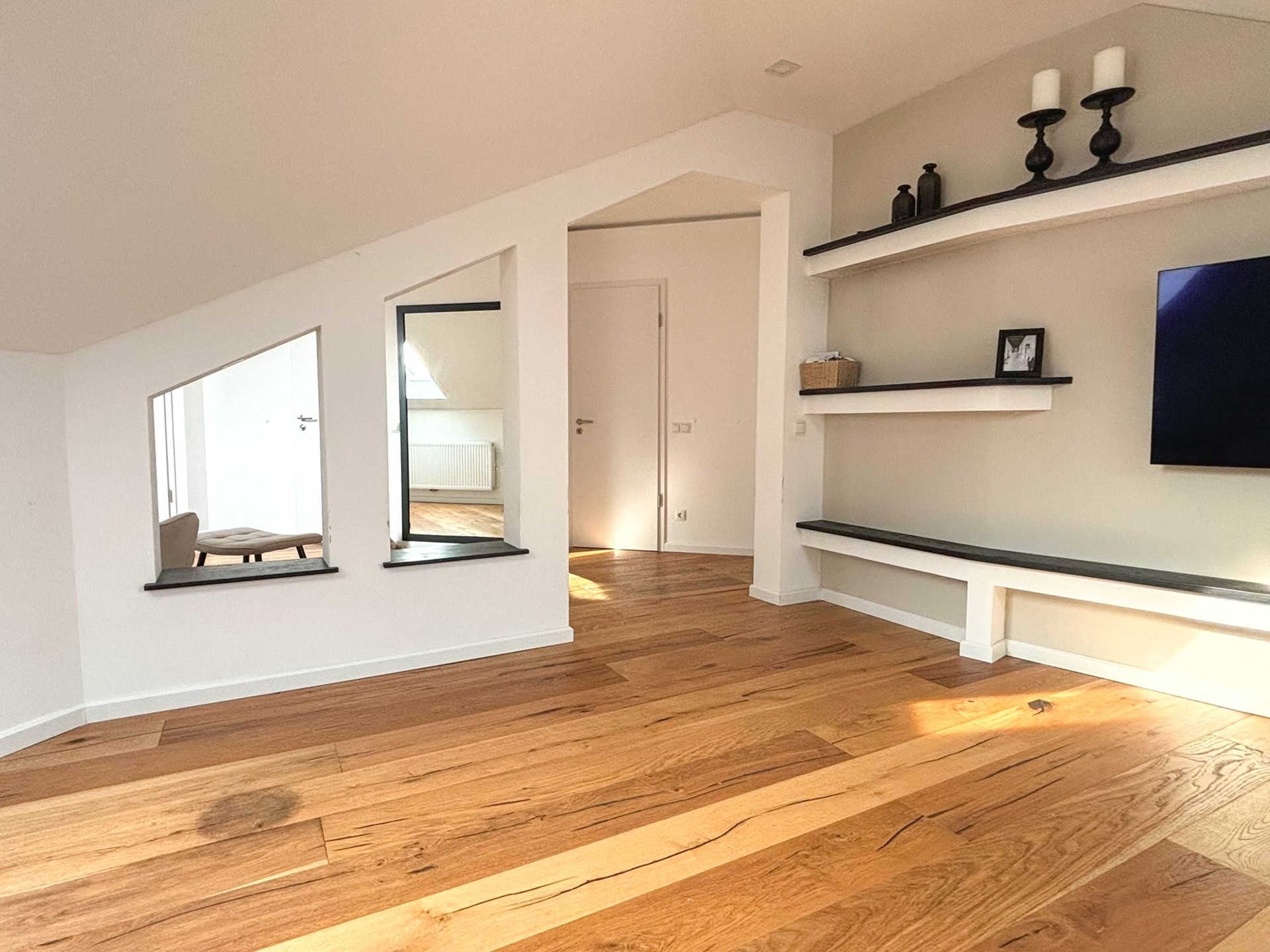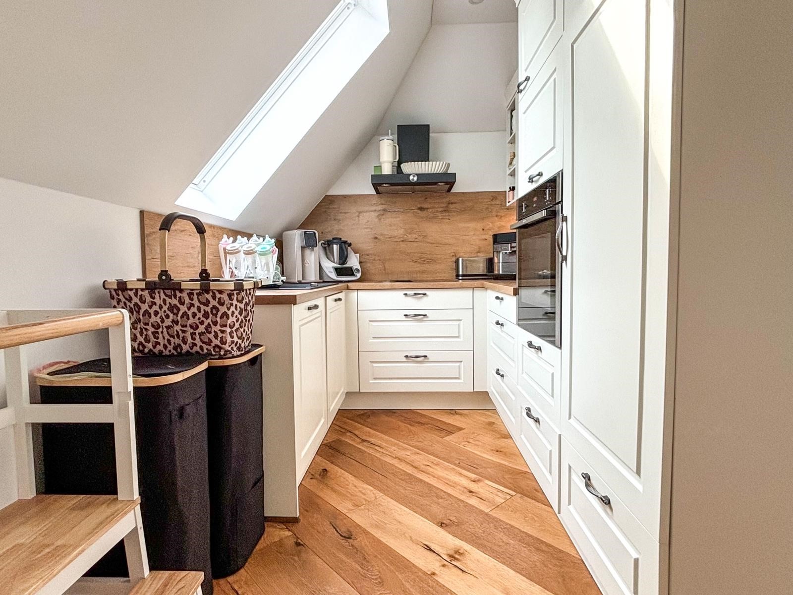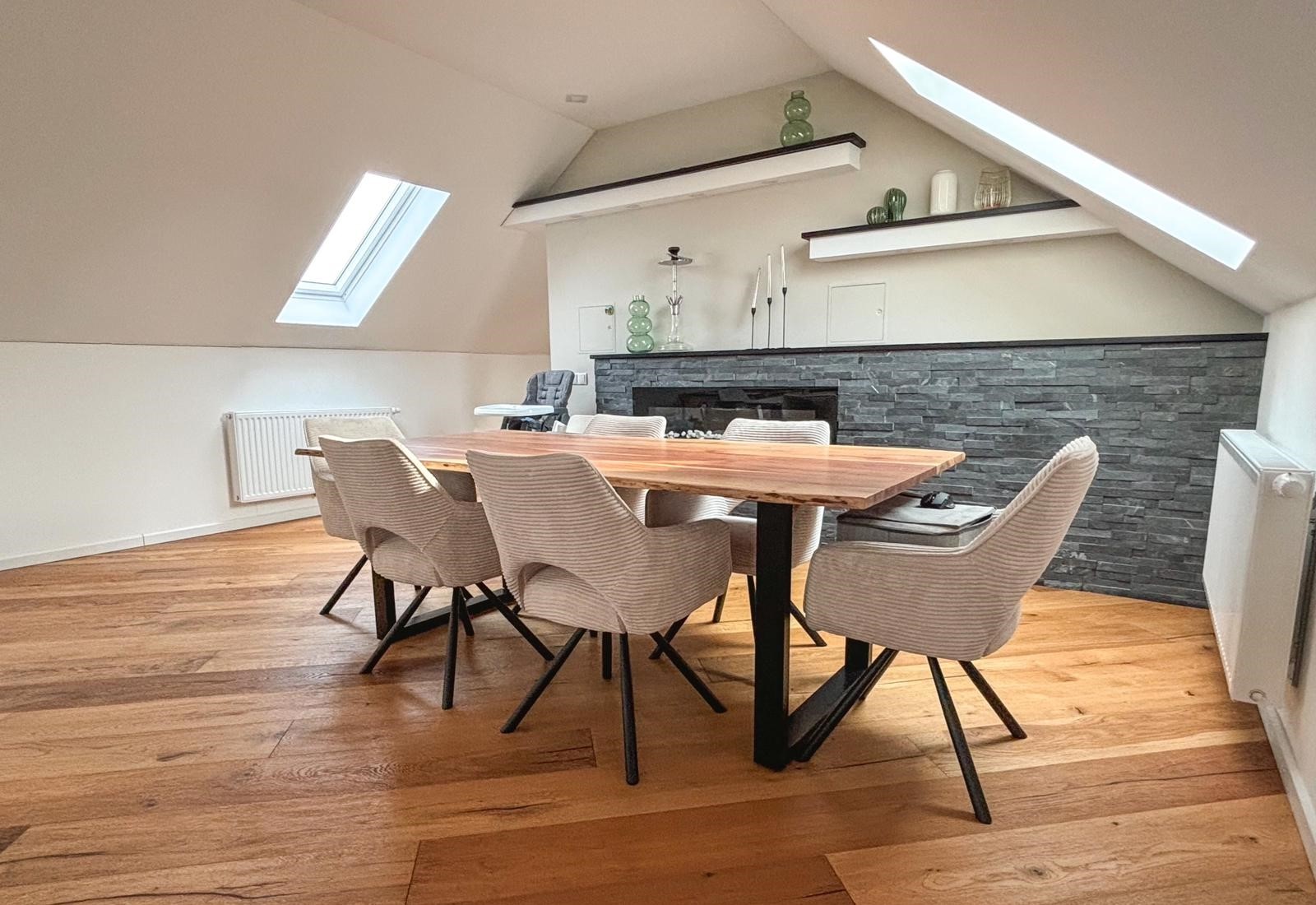 Op de bovenverdieping bevindt zich een ca. 120 m² groot, recent gerenoveerd appartement met een eigen karakter.