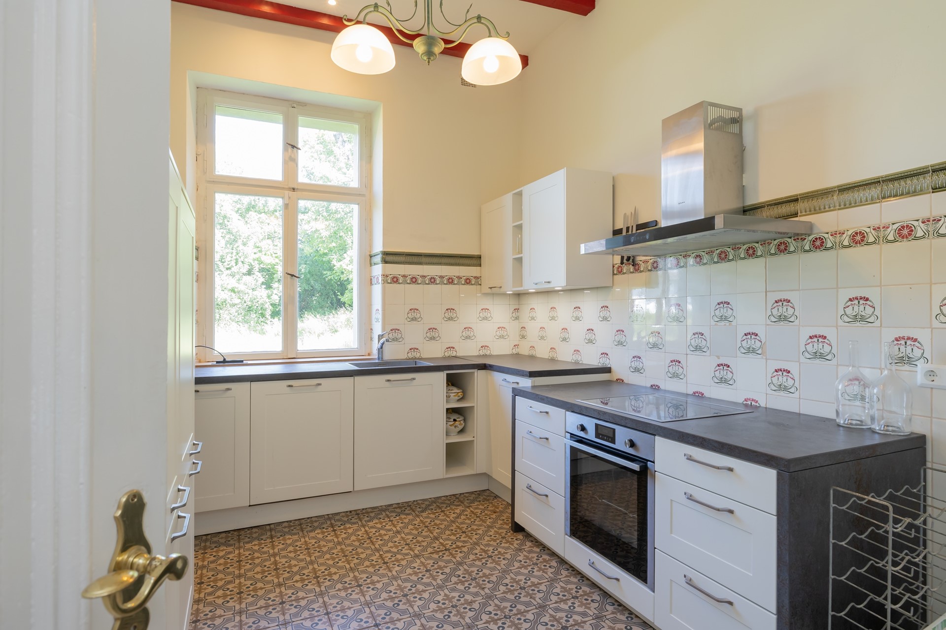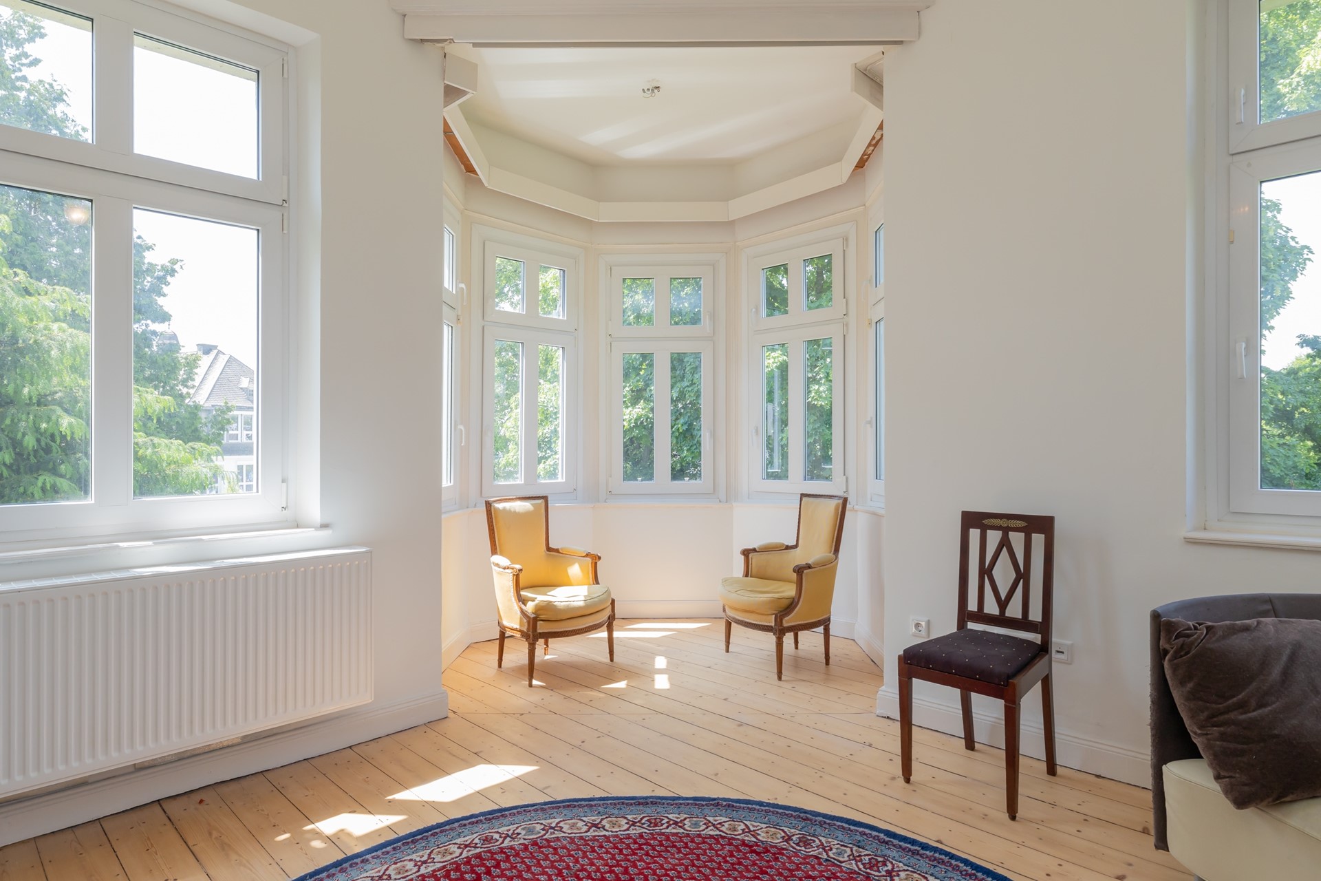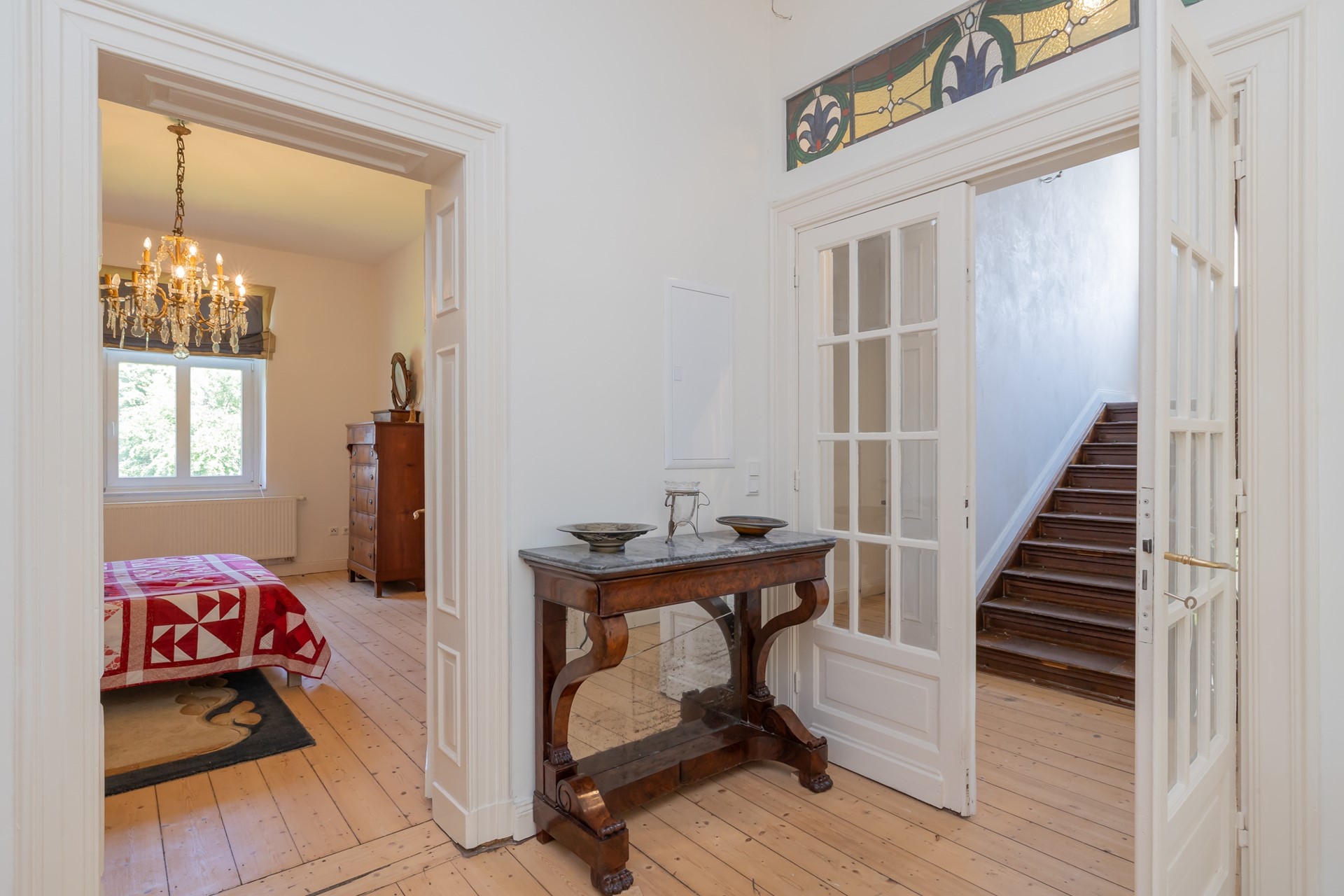 De Jugendstil-elementen, waaronder zeldzame wandtegels in de keuken, fraai stucwerk en het traphuis, zijn prachtig bewaard gebleven. Samen met de neoklassieke bouwstructuur vormt dit een unieke mix die je zelden ziet. De villa steekt duidelijk uit boven de omringende vakwerkhuizen, letterlijk én figuurlijk.