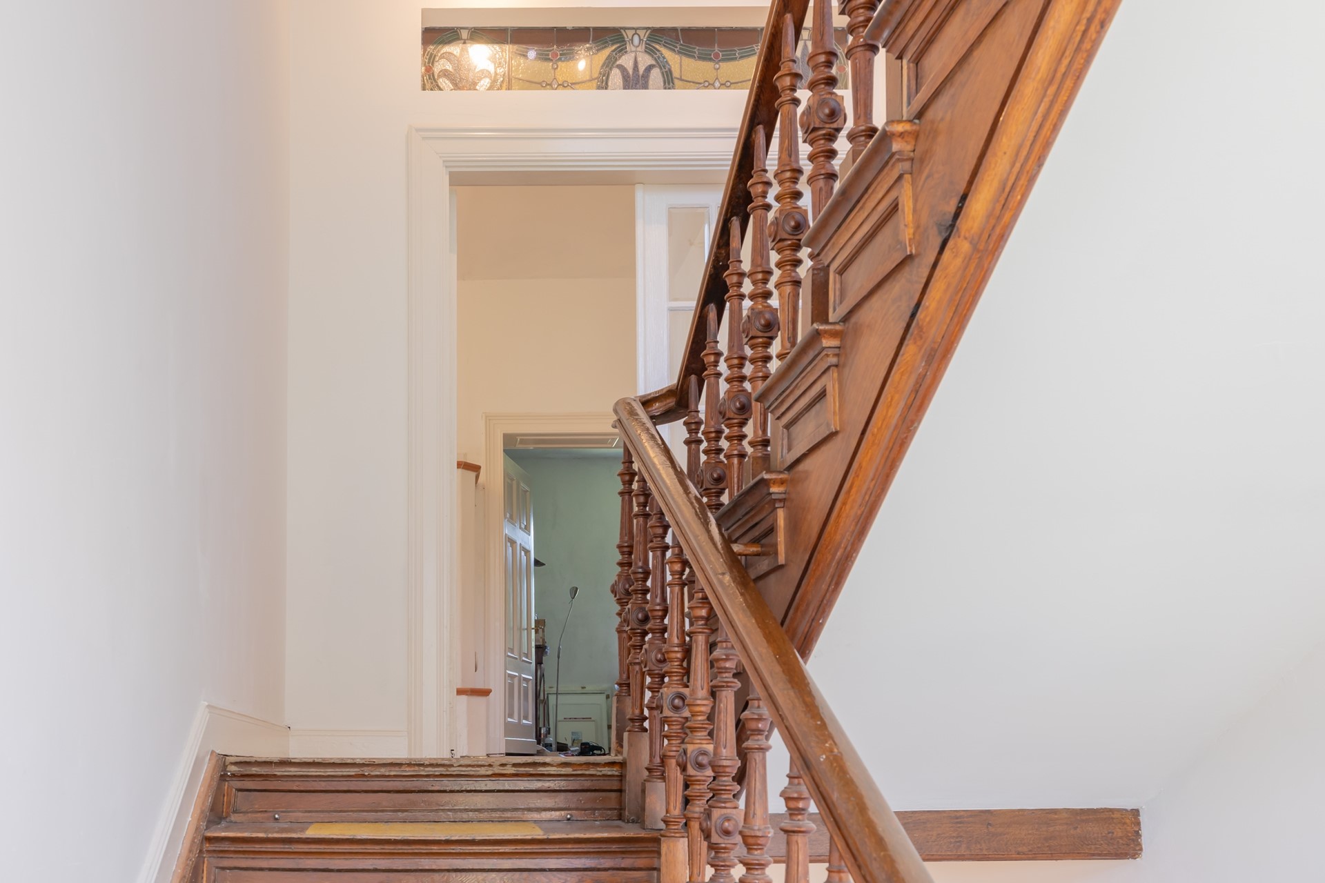 • Oorspronkelijk trappenhuis met houten leuning en originele bordestrap