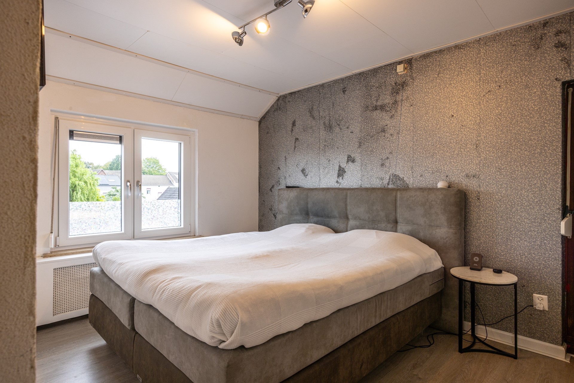 De trap met tapijt leidt naar de overloop met laminaatvloer. Op deze verdieping bevinden zich drie slaapkamers, allen voorzien van laminaatvloeren, rolluiken en Duco Dauerlüftung. Dankzij het daglicht zijn de kamers prettig in gebruik, of het nu als slaapkamer, logeer- of werkkamer is.