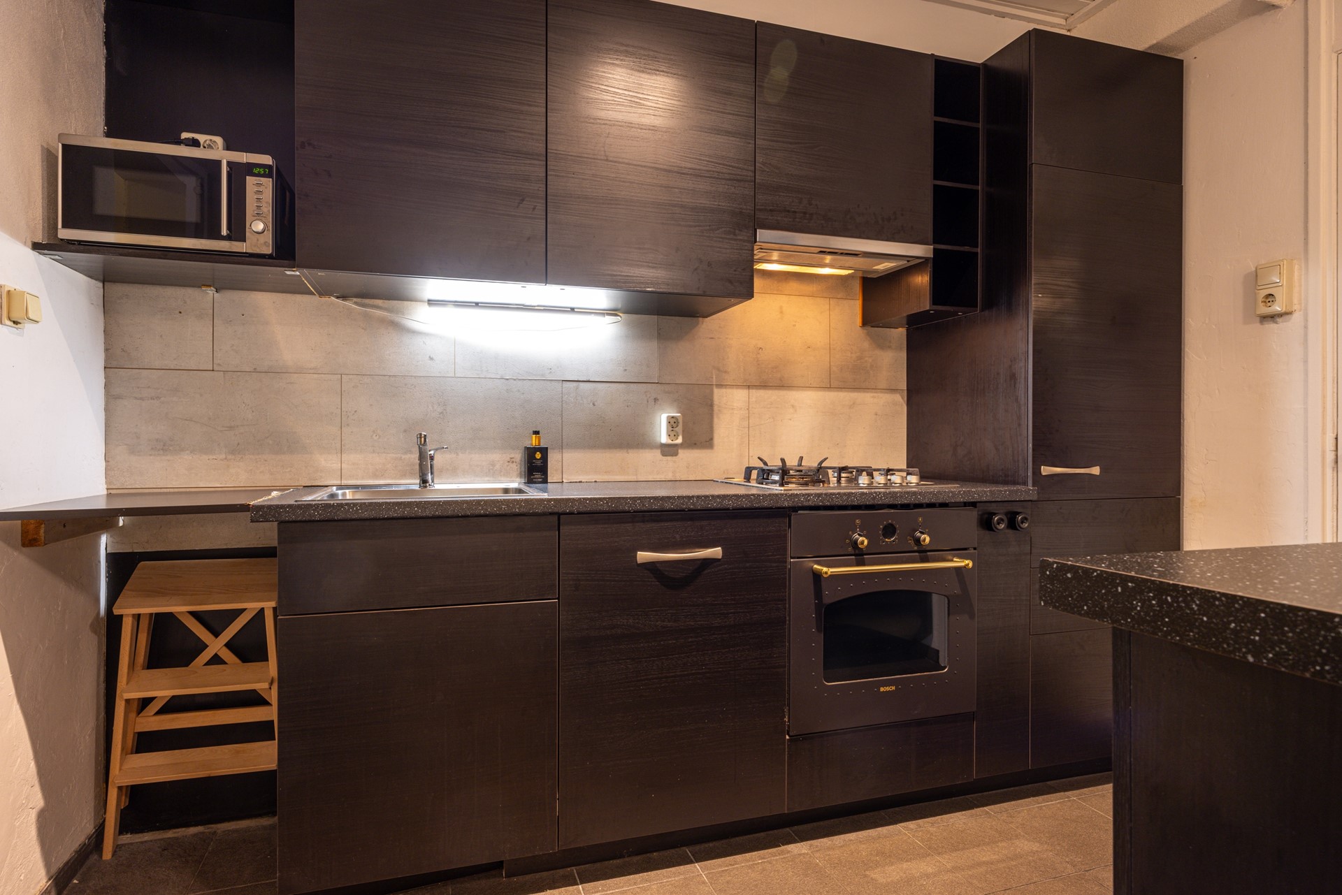 De bijkeuken is functioneel ingericht en voorzien van witgoedaansluitingen. Daarnaast biedt deze ruimte extra bergruimte en vormt zij een handige schakel tussen de verschillende leefruimtes. Vanuit hier is ook de zitkamer bereikbaar.
