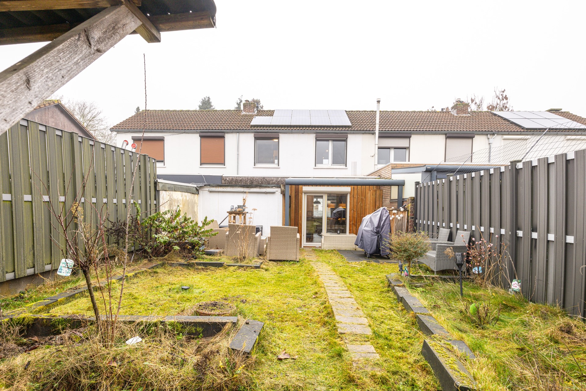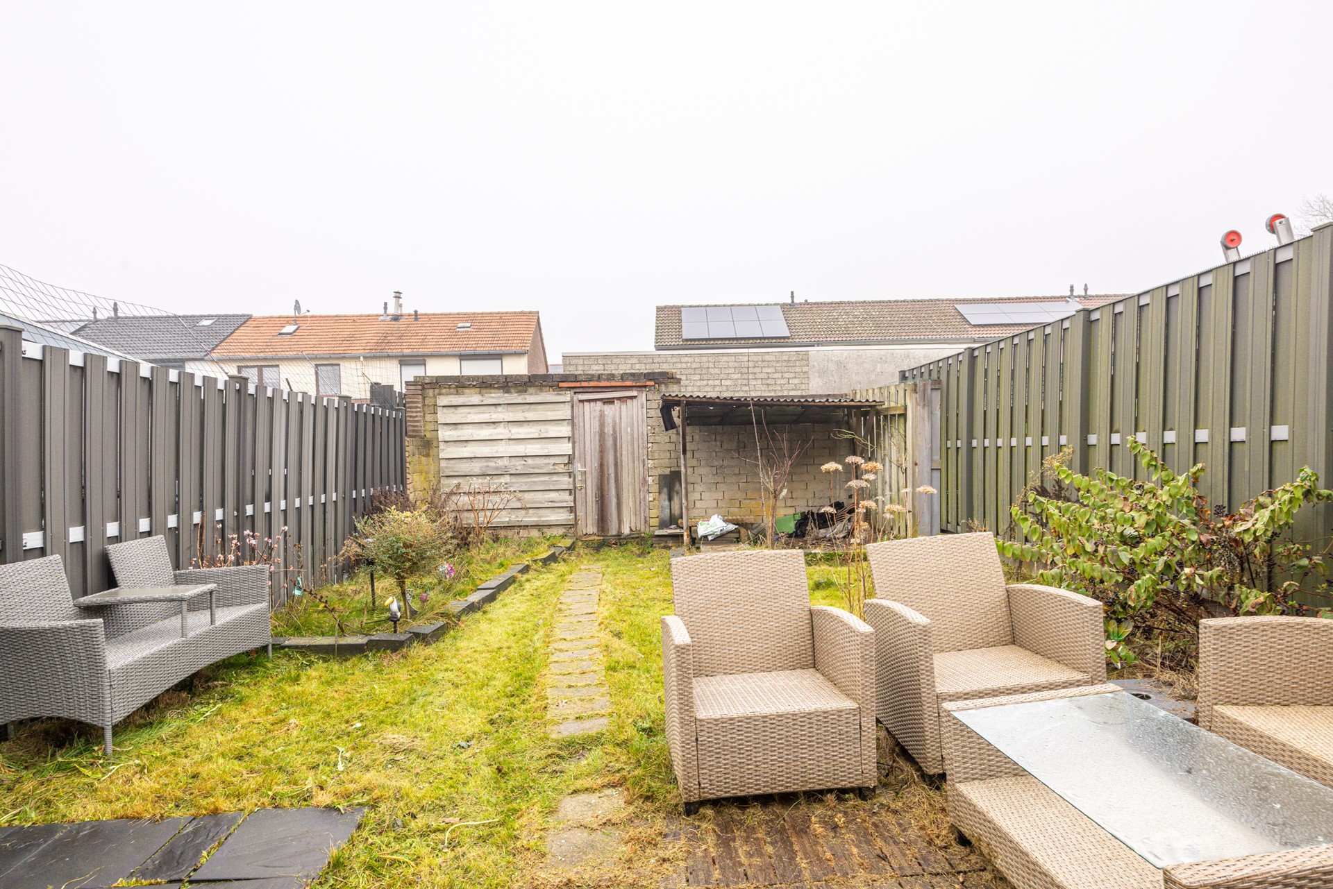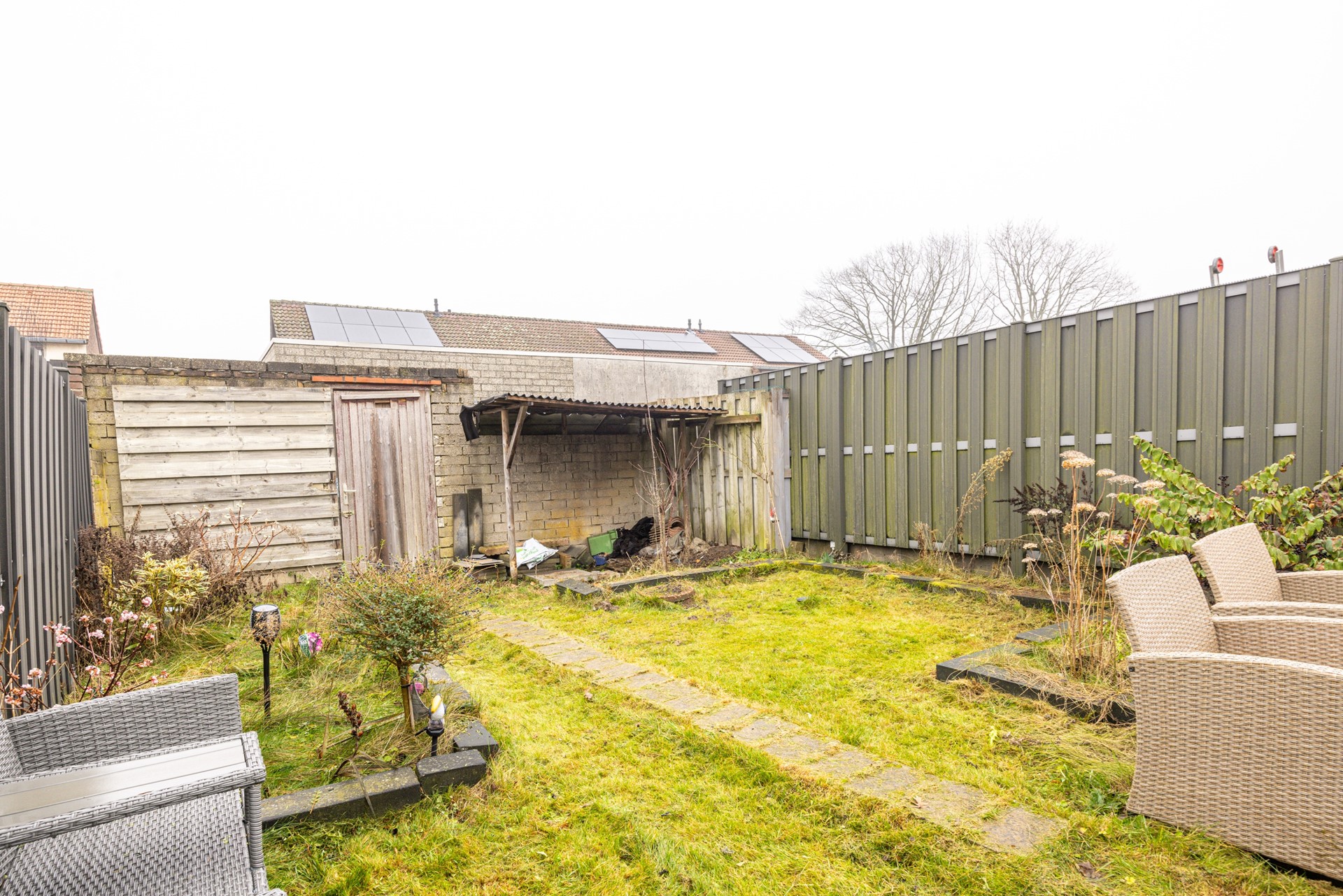 - Achtertuin met overkapping, berging en eigen achterom