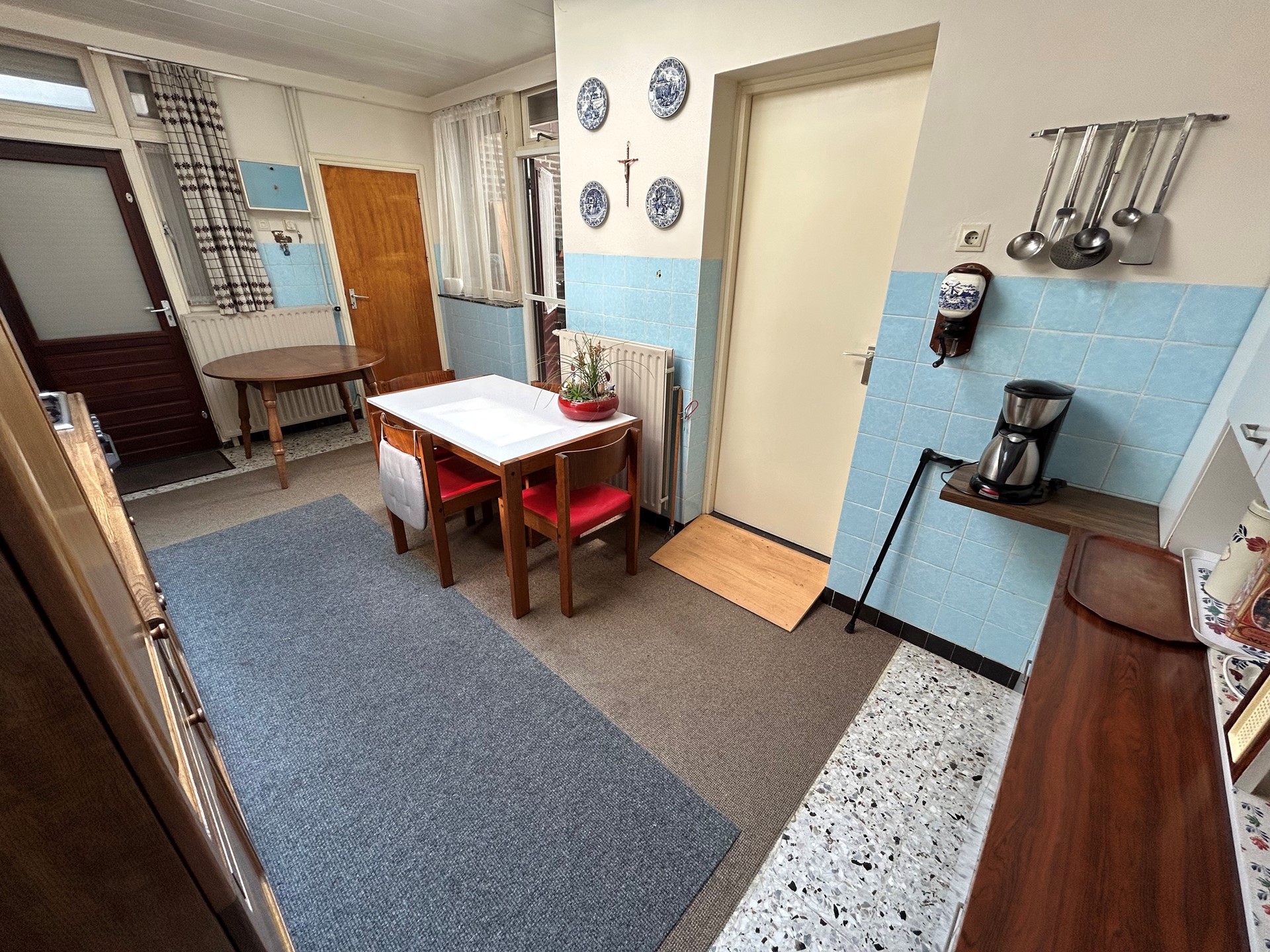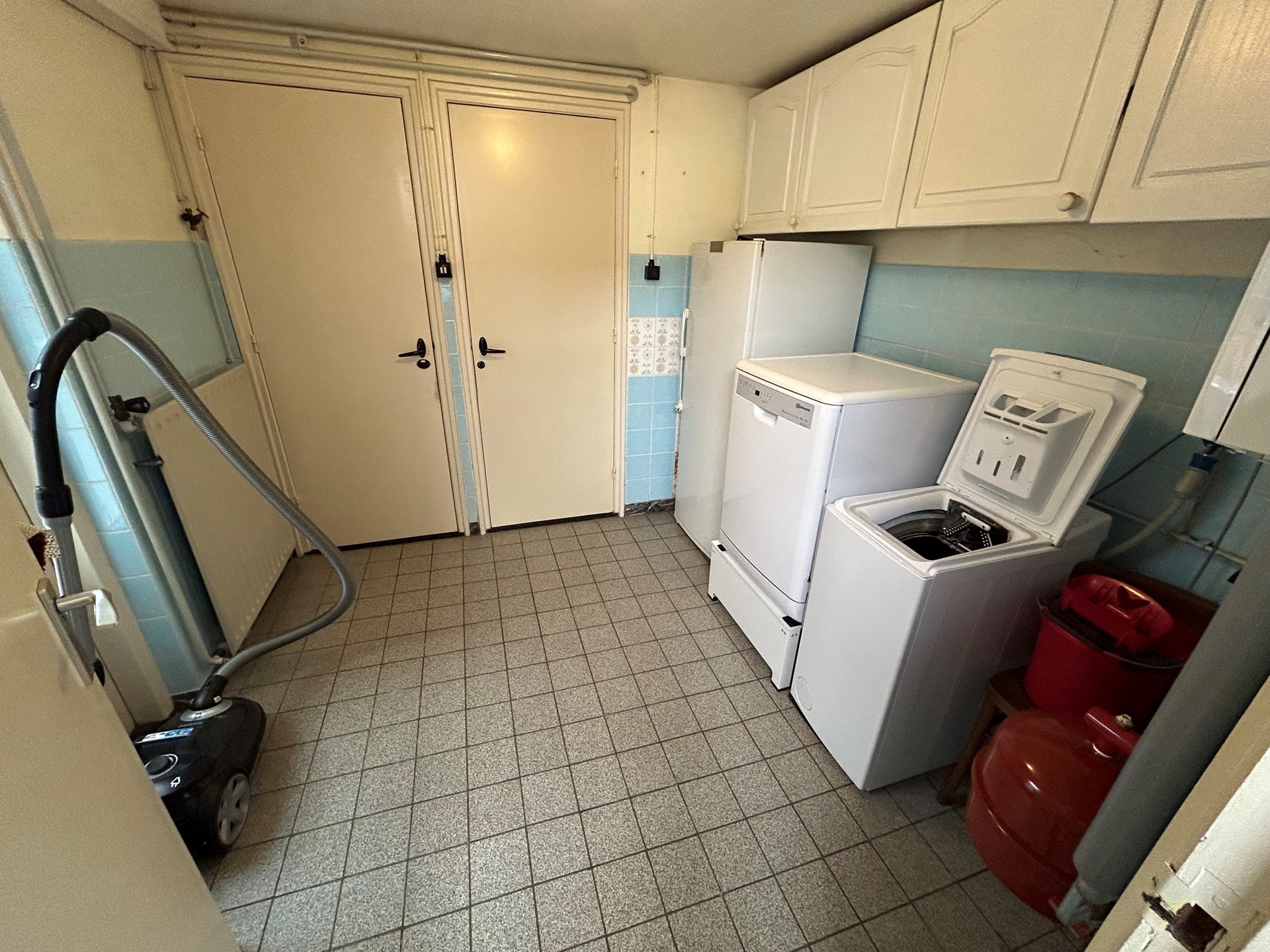 Bijkeuken 2,70 x 2,55 met plavuizenvloer, aansluitingen was-apparatuur en cv-combiketel Remeha Avanta 35 C van 2021 (eigendom) en deur naar serre, toilet en badkamer.
