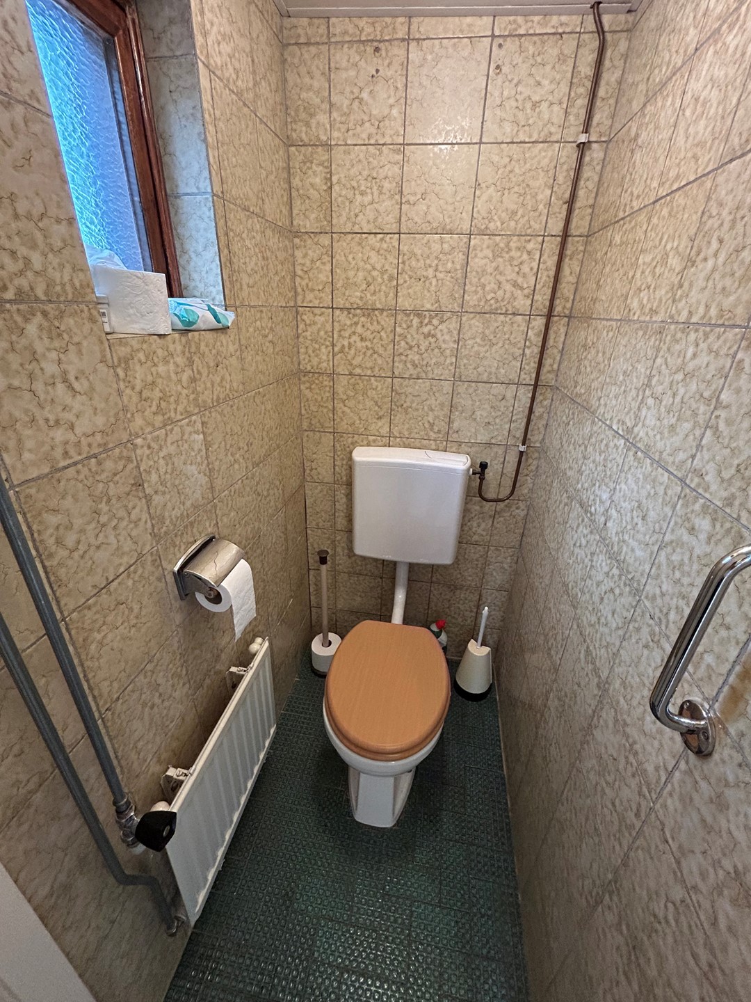 Toiletruimte 1,25 x 0,85 met tegelvloer en duoblok.