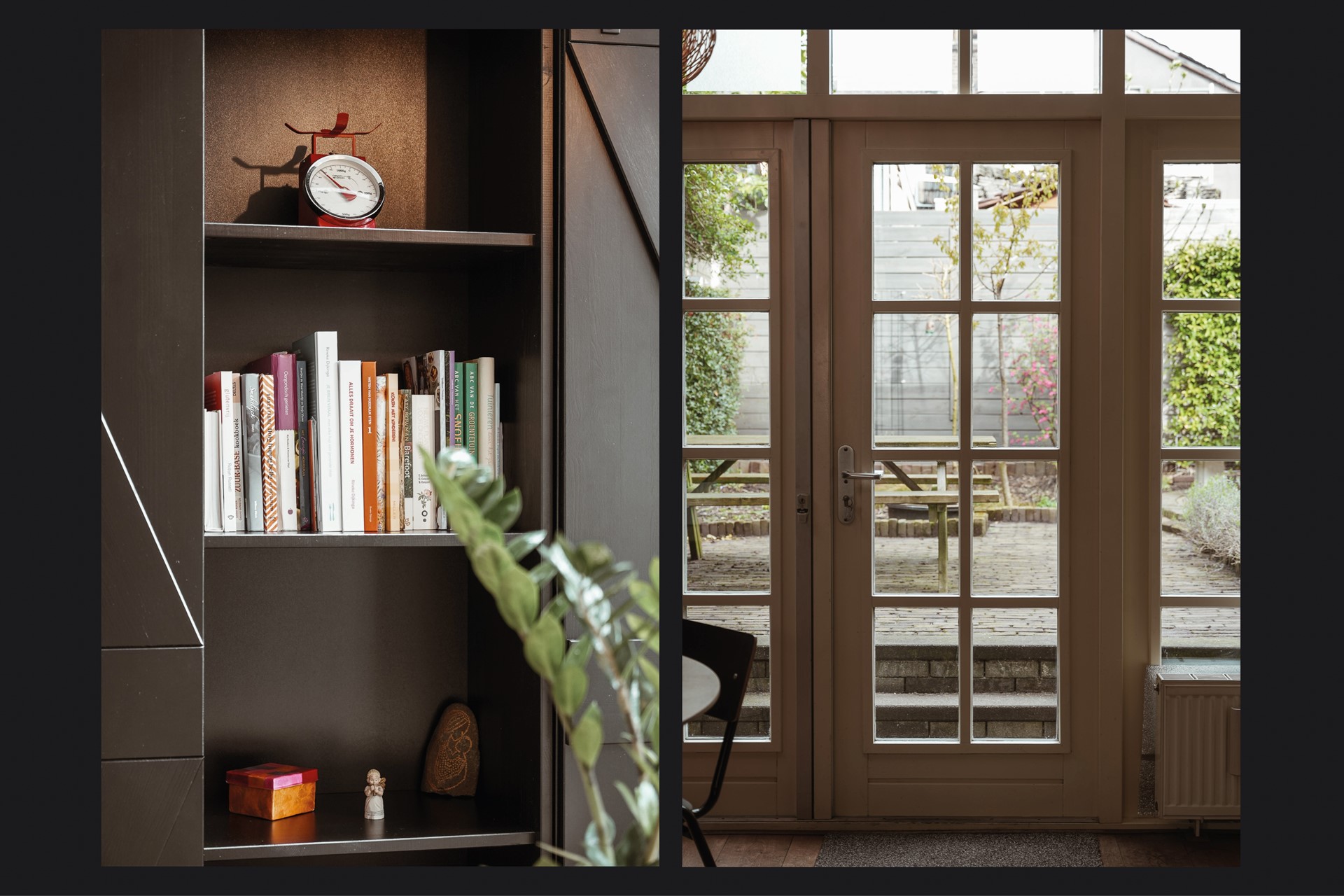 De Bergstraat is een van de fijnste straten van Leerdam. Smal, rustig, met gevels die tegen elkaar aan staan zoals dat in een oude binnenstad hoort. Aan de voorzijde heeft de woning een verzorgde geveltuin met olijfbomen, klimplanten en vaste beplanting die het huis een zachte uitstraling geven. Buren kennen elkaar. Het is de soort straat waar je ’s avonds een glas wijn op de stoep drinkt.