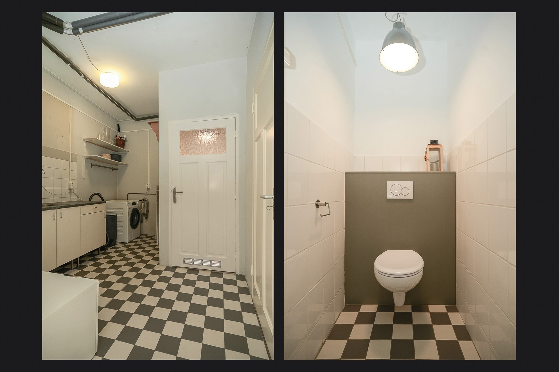 In de bijkeuken zijn alle huishoudelijke noodzakelijkheden netjes weggewerkt, er is hier plek voor de wasmachine en droger. Ook vind je hier het toilet en heb je toegang tot de garage. De garage zelf biedt ruimte voor fietsen, opslag of een auto, direct bereikbaar vanaf de straat via de garagedeur.