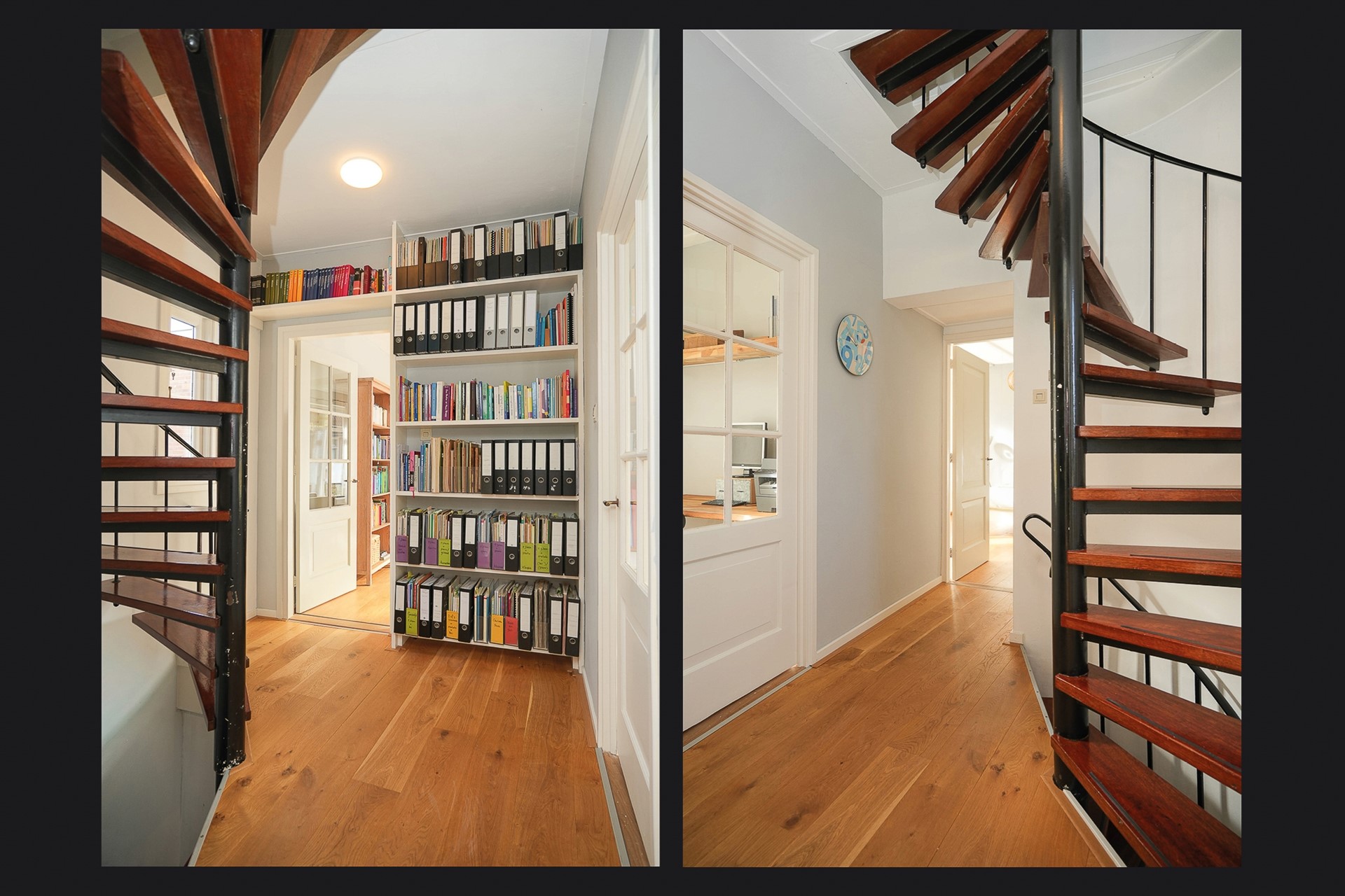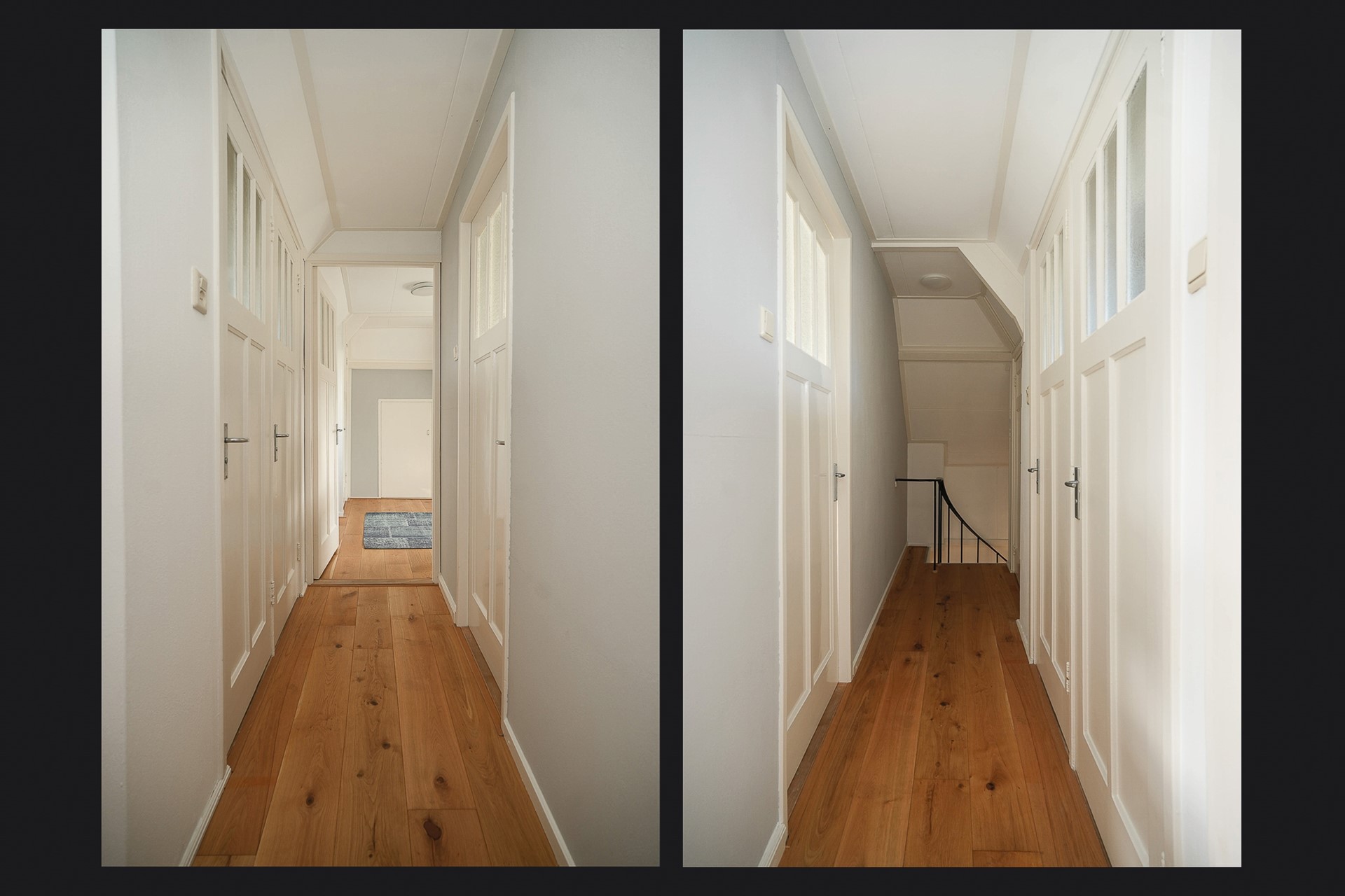 De eerste verdieping is ook prachtig. Via de trap kom je op de overloop. Deze gehele verdieping is voorzien van een nette eikenhoutenvloer.