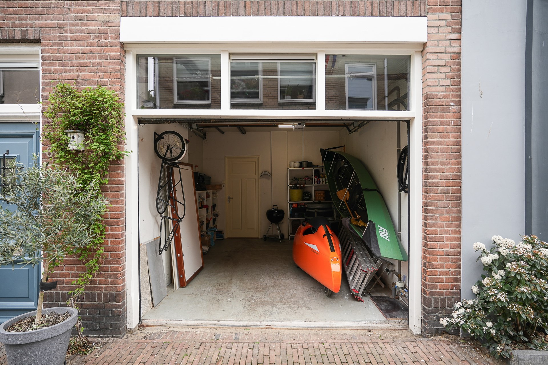 Een inpandige garage in het centrum van Leerdam is een zeldzaamheid. Deze woning heeft hem. De garage van circa 16 m² is voorzien van een elektrische garagedeur en binnendoor bereikbaar via de bijkeuken. Ideaal als praktische bergruimte voor fietsen, gereedschap of al het andere dat je niet in huis, maar wel altijd bij de hand wilt hebben. Voor een centrumwoning is dit een voorziening die je niet vaak tegenkomt.