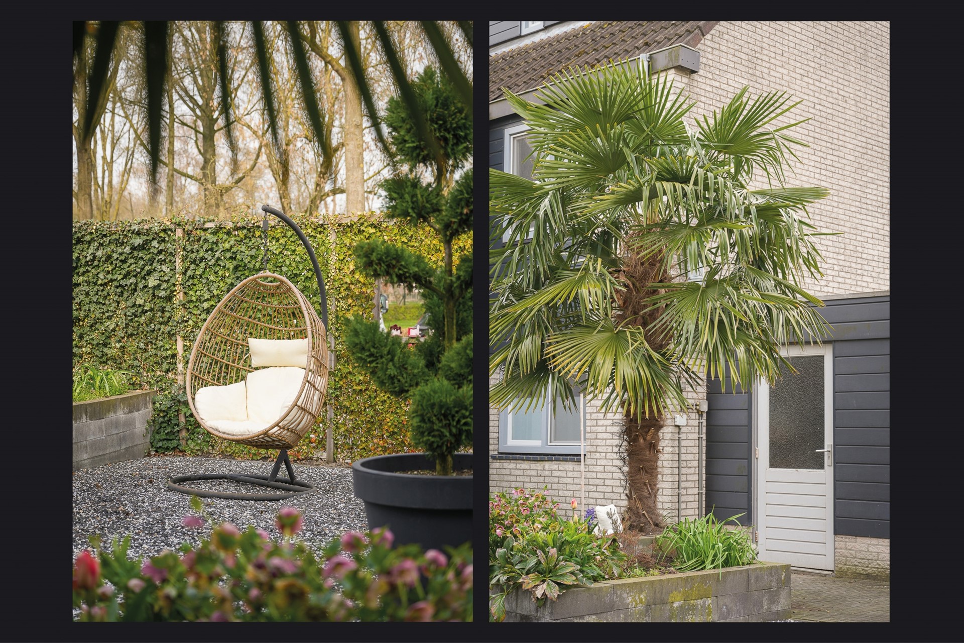 De ligging op de hoek zorgt voor een opvallend grote voortuin. De tuin is in 2024 gevarieerd aangelegd met een combinatie van bestrating, grind, een verhoogde plantenbak met onder andere een palm, leuke doorkijkjes naar het groen in de omgeving én een overkapping. Aan de achterzijde van de woning ligt een wat kleinere tuin met terras en vijver. Een fijne gezinswoning met ruimte, mogelijkheden en een prettige ligging.