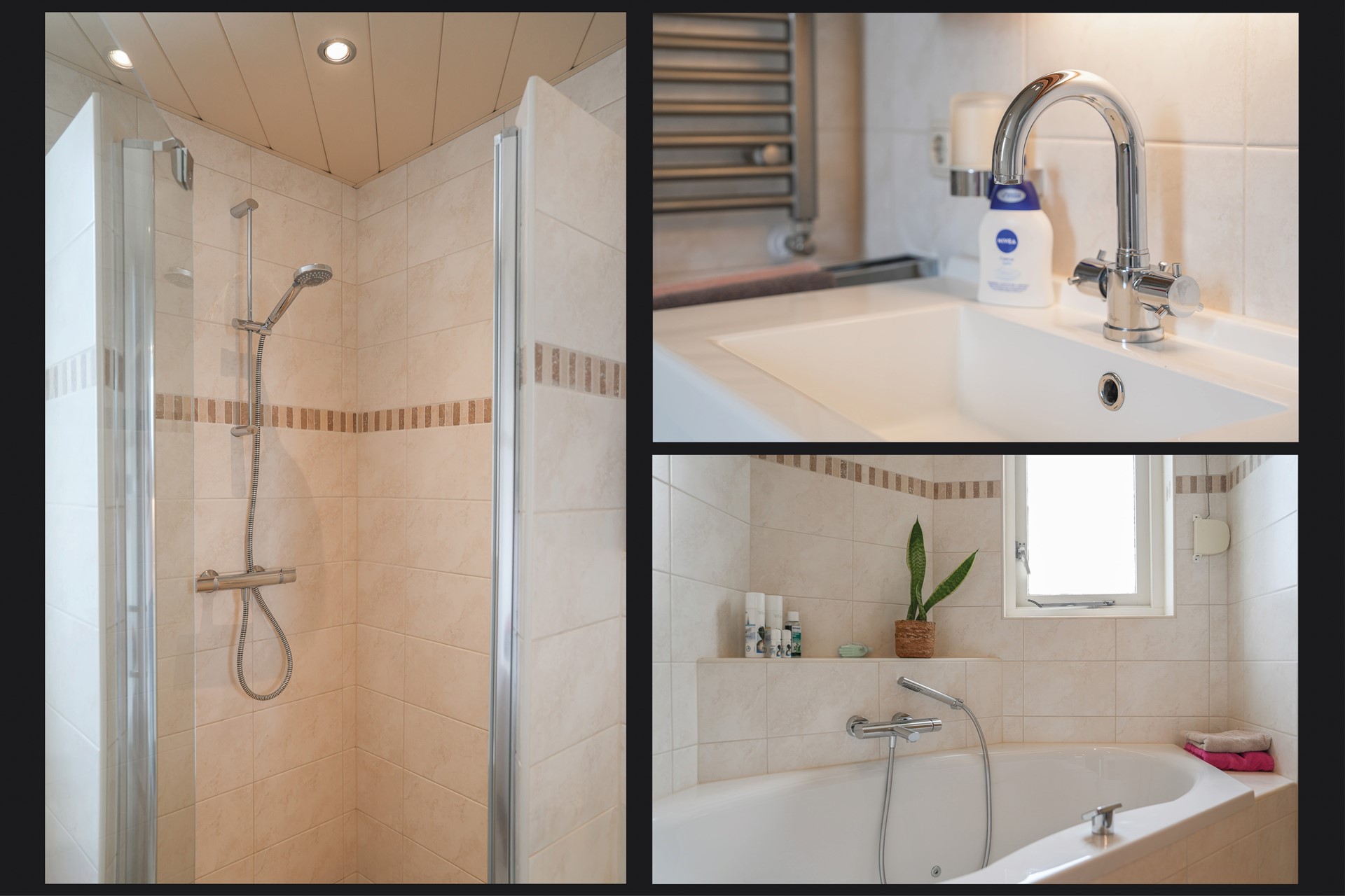 De badkamer is keurig onderhouden en beschikt over een douche, ligbad, tweede toilet, wastafelmeubel én elektrische vloerverwarming.