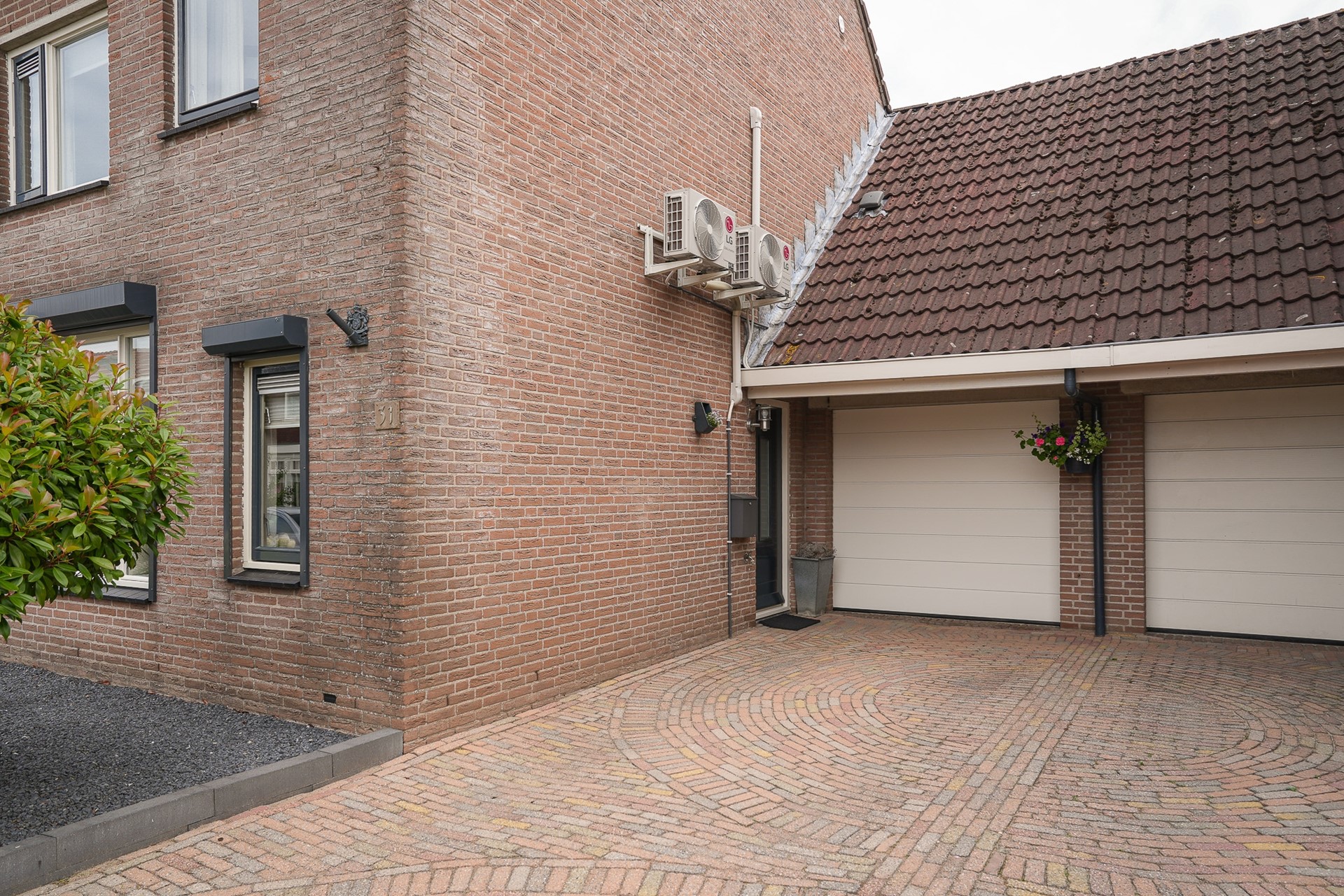 De garage is vanuit de serre bereikbaar en voorzien van een elektrisch bedienbare garagedeur richting de oprit, waar plek is voor twee auto’s.