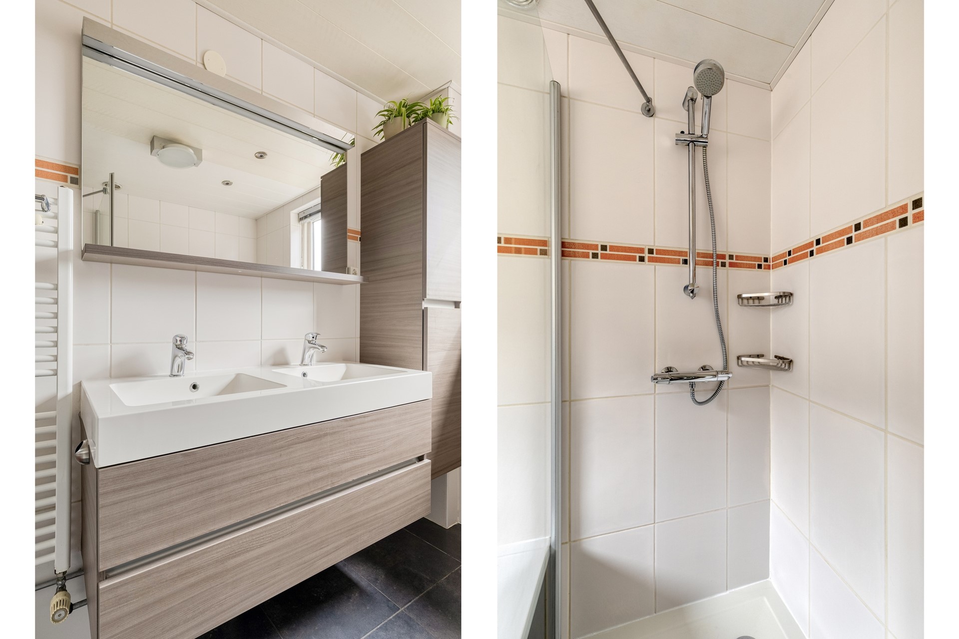 Op de eerste verdieping komen we op de overloop met toegang tot drie slaapkamers en de badkamer. Aan de achterzijde vallen direct de twee vergrote slaapkamers op dankzij de dakkapel uit 2007, uitgevoerd met kunststof kozijnen en HR++ glas. Hierdoor voelen de kamers extra ruim en licht aan. Aan de voorzijde ligt nog een derde slaapkamer, perfect als kinder-, werk- of logeerkamer. De badkamer is royaal opgezet en compleet uitgevoerd met ligbad, douche, hangend toilet en een dubbele wastafel.