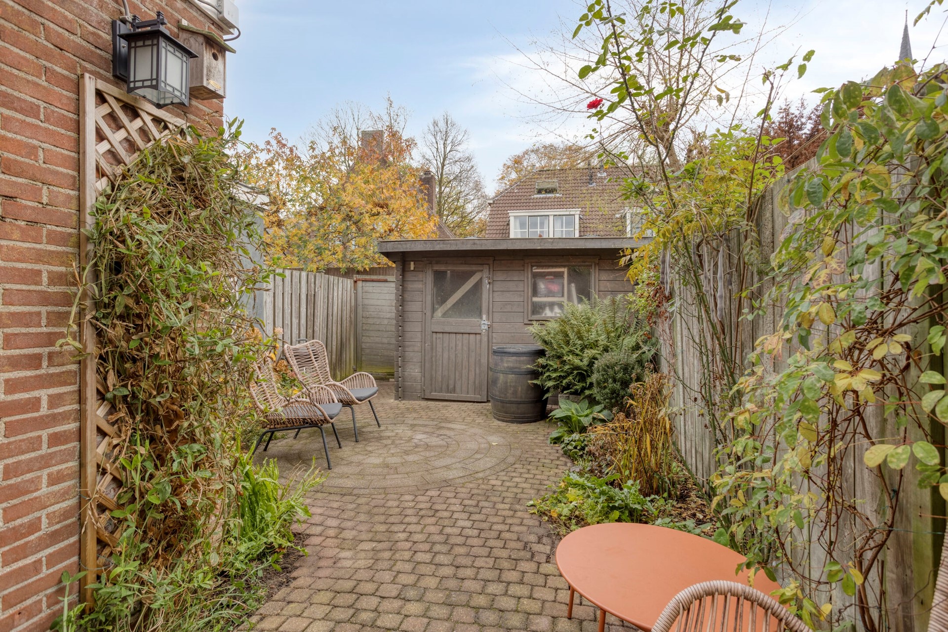 De achtertuin ligt heerlijk op het zuidoosten en biedt altijd een plekje in de zon. Met ca. 30 m² (exclusief schuur) heb je hier een fijne combinatie van groen en praktisch gebruik. Achterin staat een schuur met elektra; ideaal voor fietsen of opslag. Dankzij de achterom kom je makkelijk met je fiets uit of in de tuin.