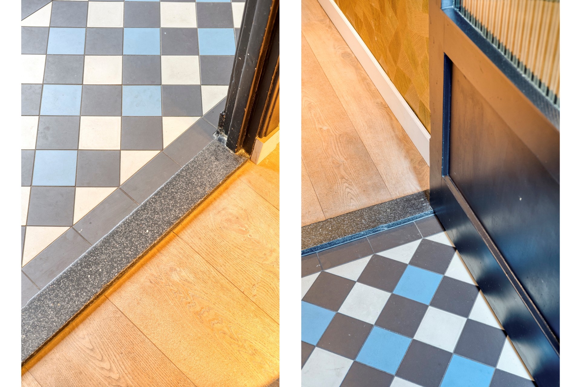 Door naar de woonkamer… wauw. Dit is écht een parel. Dankzij de uitbouw is de ruimte vanaf de erker maar liefst circa 12 meter diep tot de openslaande deuren naar de tuin. Daar is menig eigenaar in de buurt vast jaloers op. Wat een lengte, wat een licht en wat een afwerking. De uitbouw is zo’n tien jaar geleden gerealiseerd, maar oogt alsof het gisteren is gedaan. De voorkamer is diep, strak en geeft je een heerlijk vrij uitzicht over het parkje aan de voorzijde – Hierdoor heb je dus ook heel veel daglicht toetreding naar binnen.