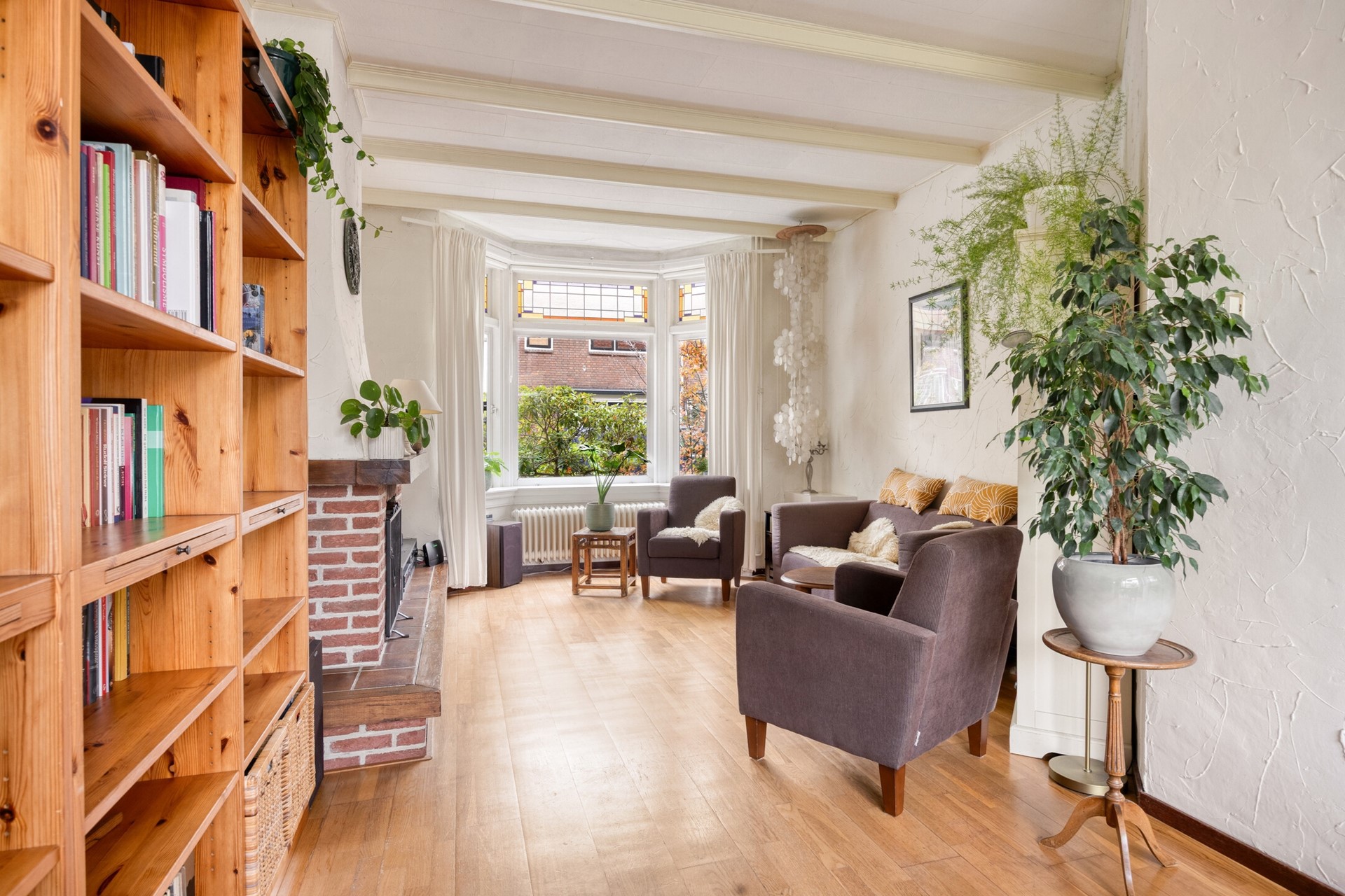 Deze woning ademt karakter. Zodra je binnenstapt, vallen de paneeldeuren, het glas-in-lood en de hoge plafonds meteen op – echte kenmerken van de bouwperiode. De houten vloeren en kozijnen versterken dat warme, authentieke gevoel dat je alleen in een jaren ’30 huis vindt.