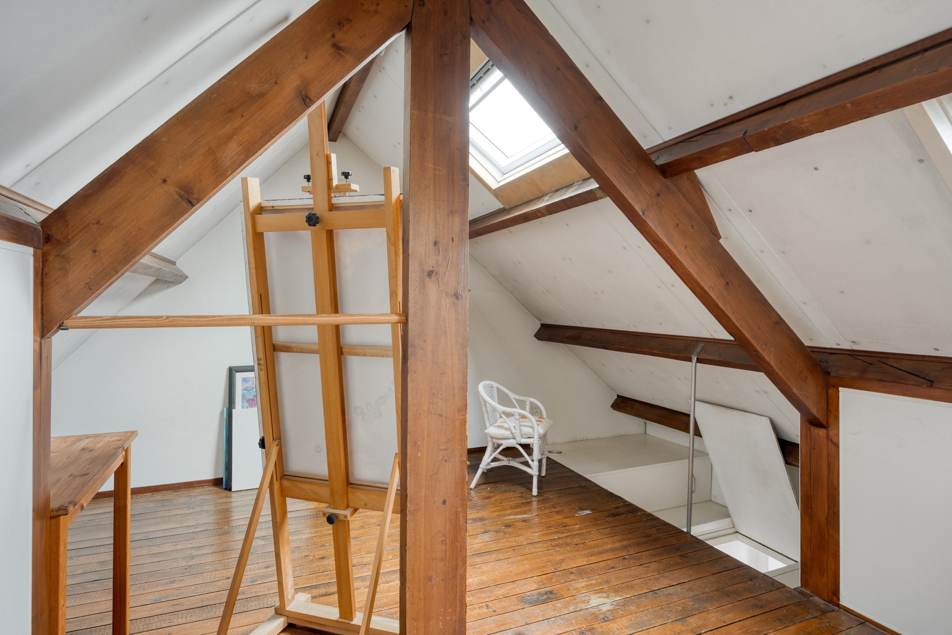 De tweede etage is nu nog geen officiële woonruimte, maar biedt volop potentie. Met het plaatsen van een vaste trap en het realiseren van één of twee dakkapellen creëer je eenvoudig extra woonoppervlak – ideaal voor een extra slaapkamer, werkkamer of zelfs een tweede badkamer.