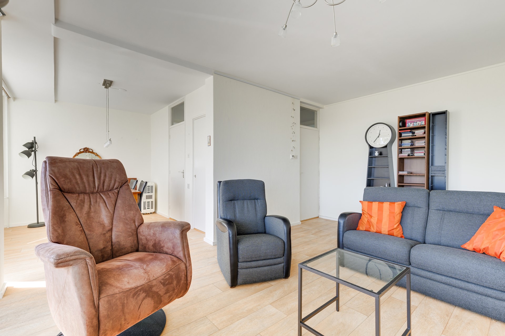 De woonkamer is heerlijk licht dankzij de grote raampartijen en biedt een vrij uitzicht. Vanuit de woonkamer is er toegang tot het balkon waar je in alle rust kunt genieten van de zon en het uitzicht. Door de ligging op hoogte ervaar je veel privacy en een ruimtelijk gevoel.