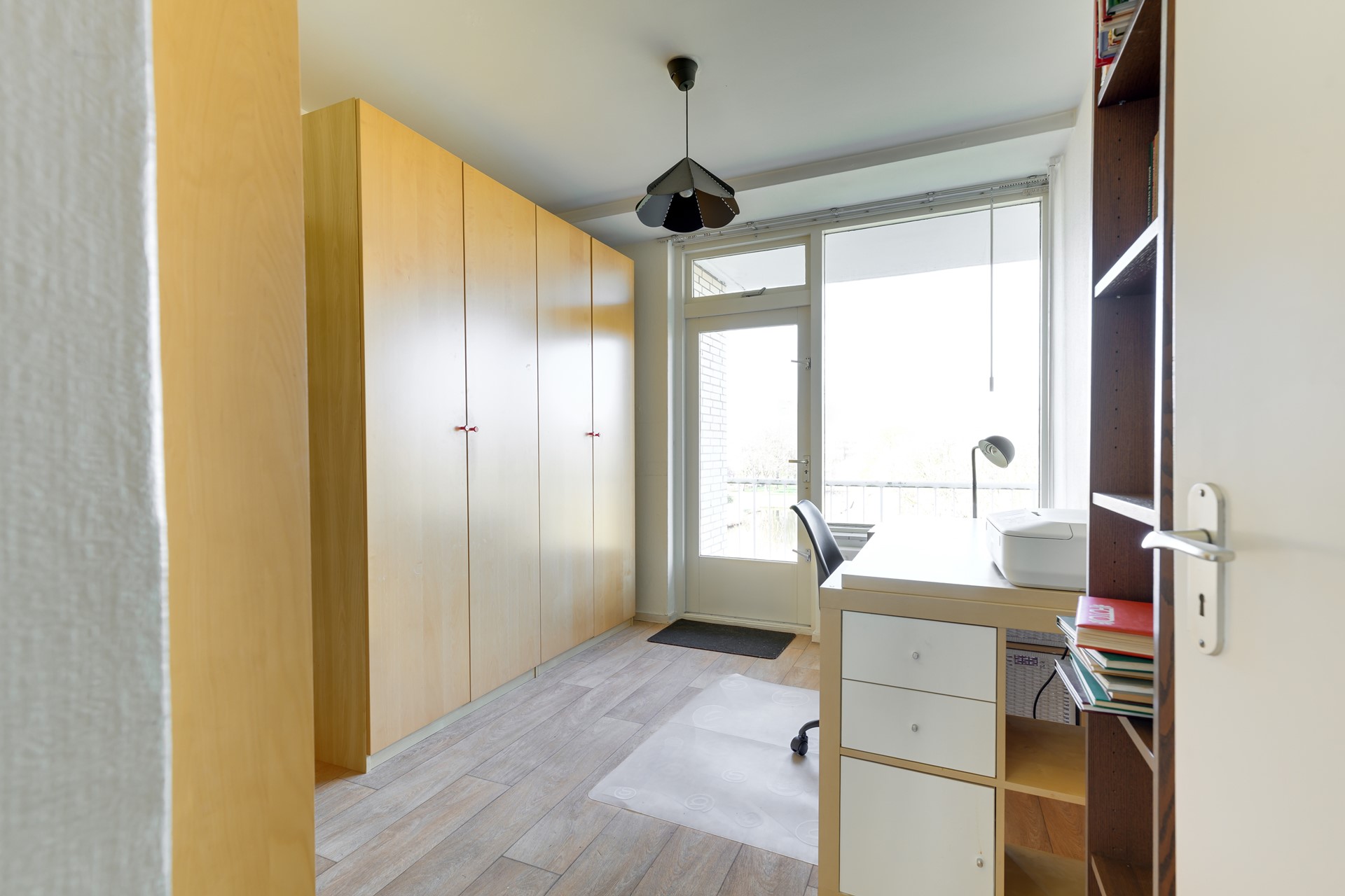 De keuken is netjes en functioneel ingericht en vormt een goede basis voor dagelijks gebruik. Het appartement beschikt over twee goed bemeten slaapkamers, waarvan één toegang biedt tot het tweede balkon, met uitzicht over de groene omgeving en waterpartij. Ideaal als hoofdslaapkamer in combinatie met een werk-, hobby- of logeerkamer.