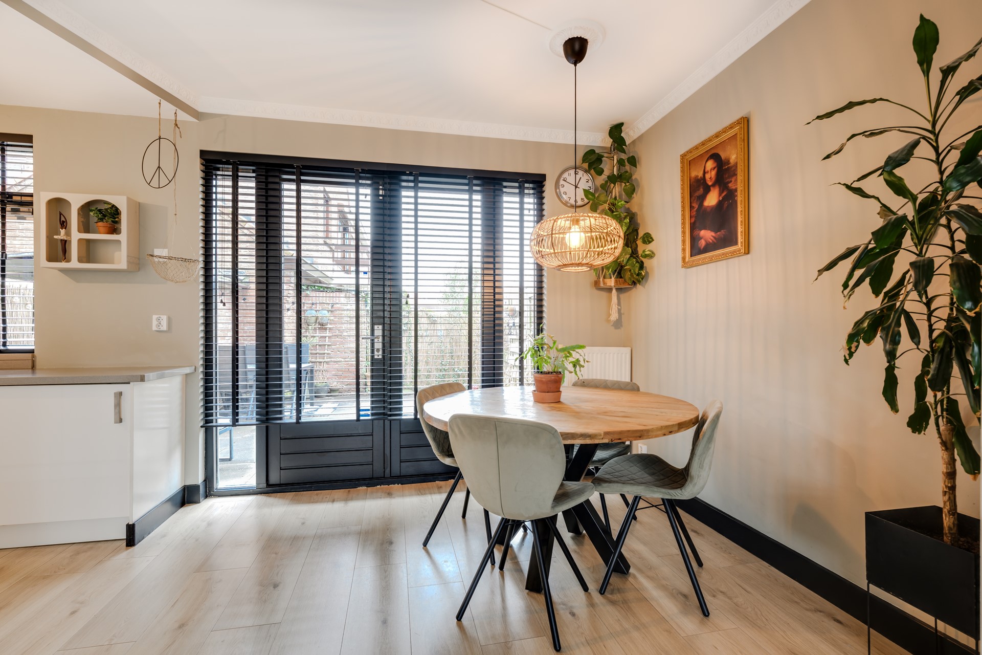 De woning biedt circa 106 m² woonoppervlakte en beschikt over een lichte woonkamer, open keuken, vier slaapkamers en een zonnige achtertuin met berging.