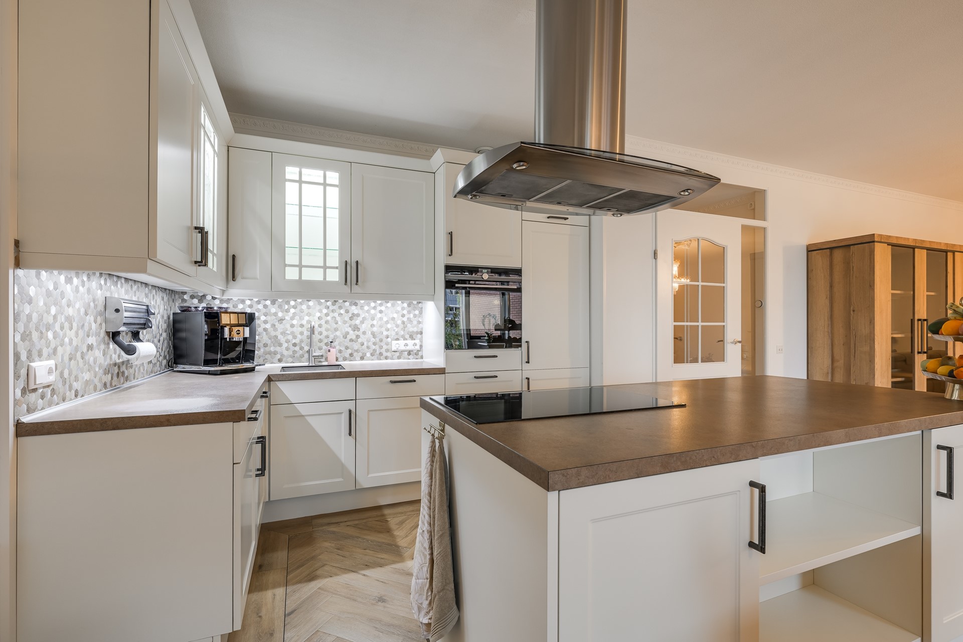 De open keuken (2021) is modern uitgevoerd en voorzien van een inductiekookplaat, koelkast, RVS-afzuigkap en voldoende bergruimte. De keuken staat in open verbinding met de woonkamer, waardoor een fijne leefkeuken is ontstaan.