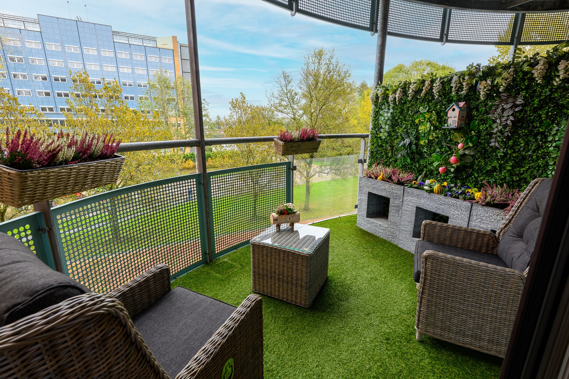 Aan de voorzijde kijk je uit op het groen en geniet je van uitzicht richting water en bomen. Aan de galerijzijde is een tweede terras met eveneens voldoende ruimte voor een zitje.