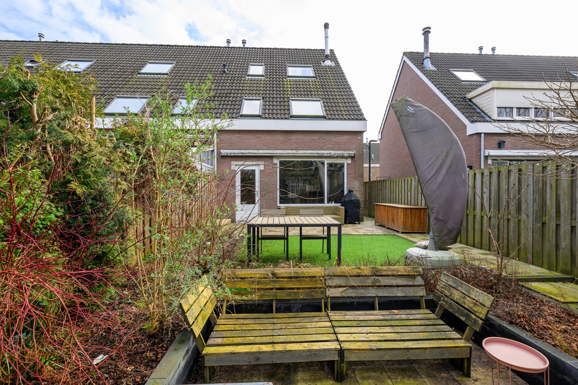 De woning ligt in een rustige en groene woonwijk in Leidschendam waar water, wandelpaden en speelvoorzieningen het straatbeeld bepalen. Direct achter de woning loopt een groenstrook met water en charmante bruggetjes, wat zorgt voor een vrij en natuurlijk uitzicht.