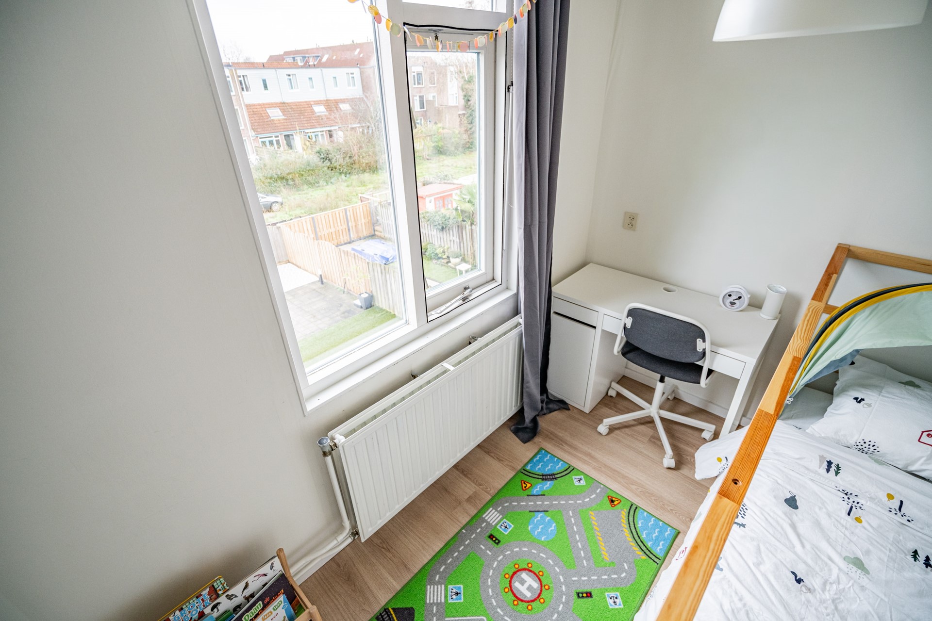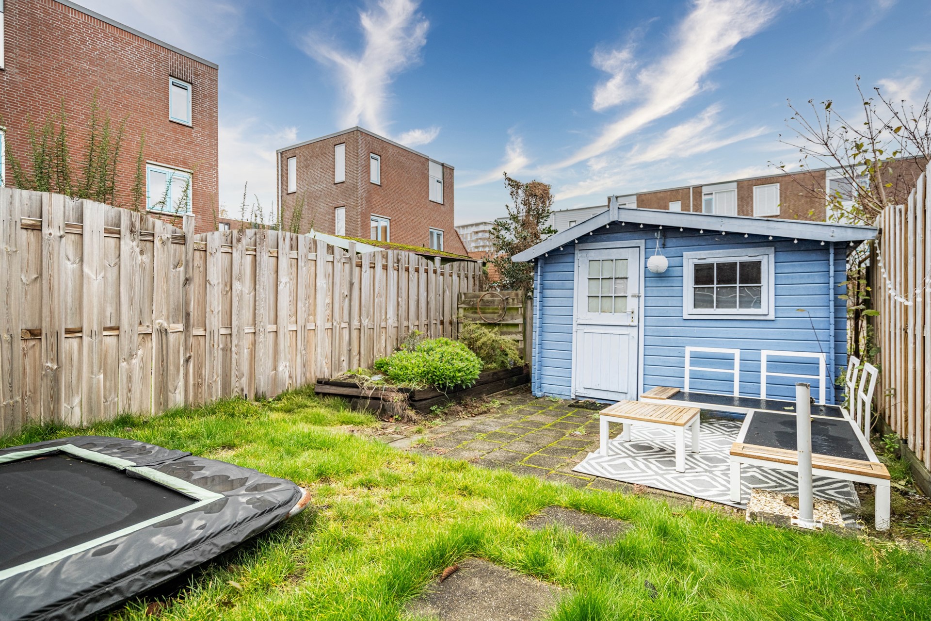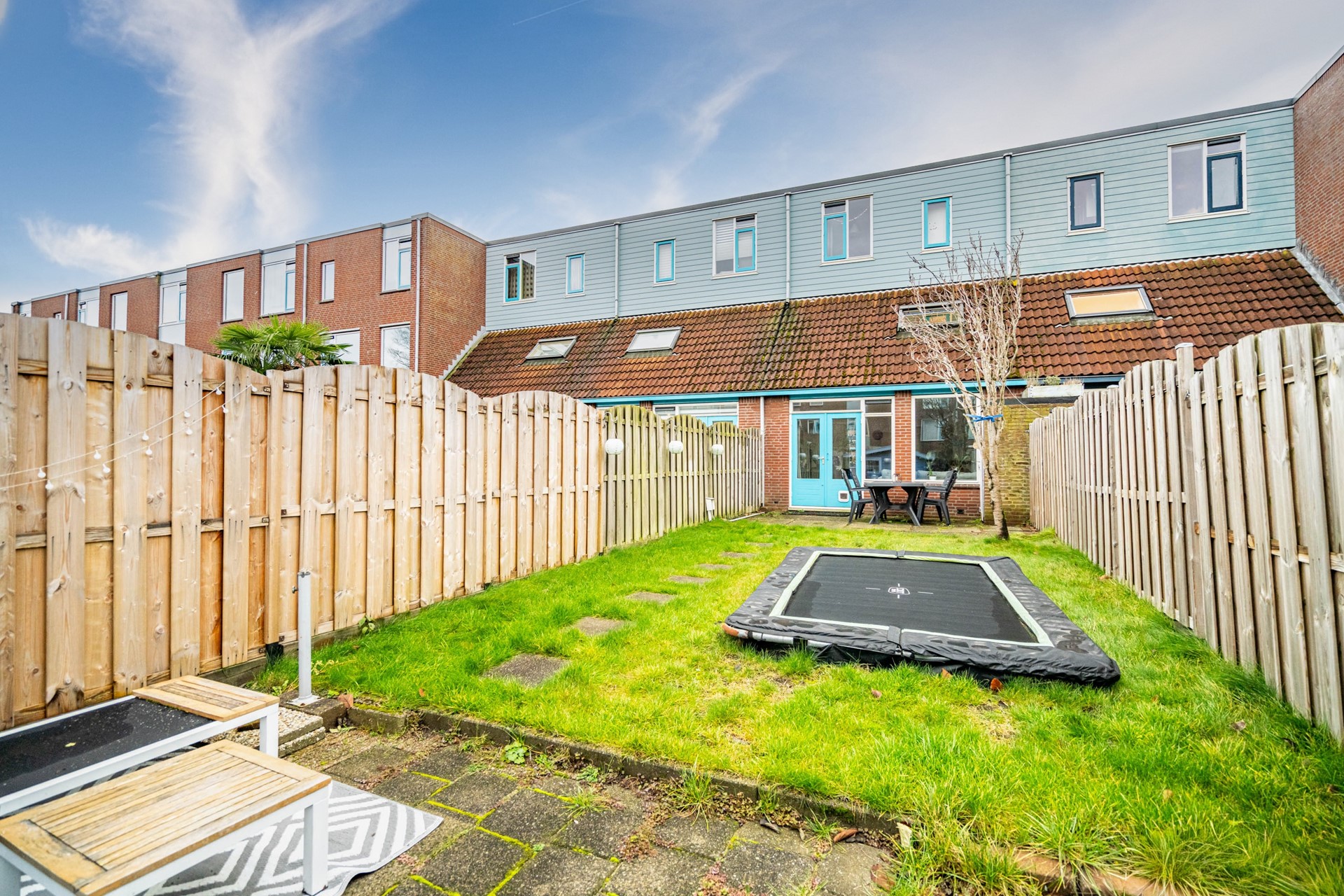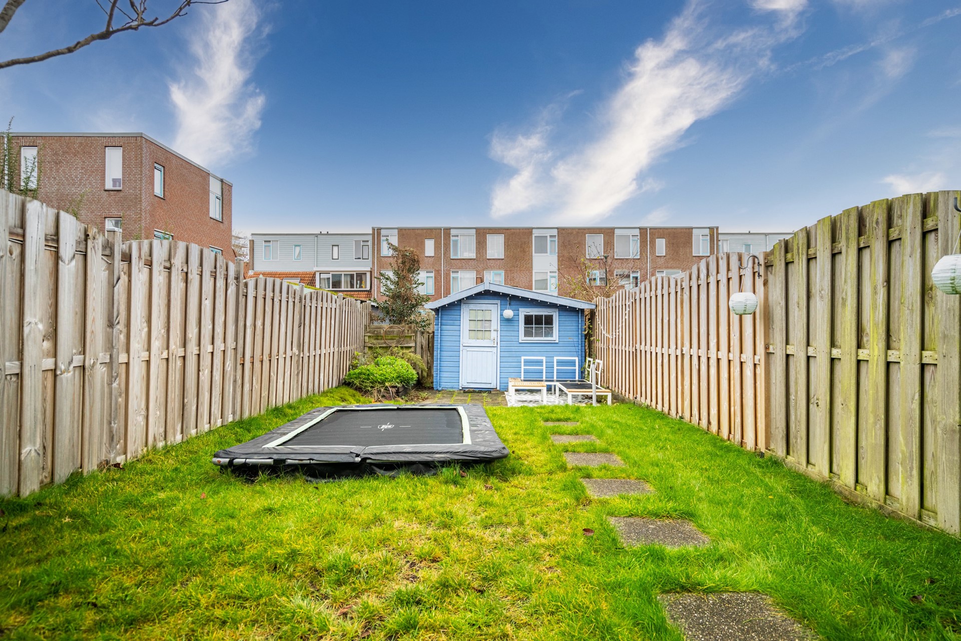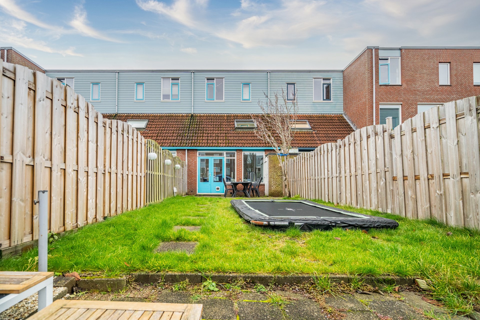 Via de achterzijde bereikt u de tuin. Deze is uitzonderlijk diep, waardoor er altijd wel een plekje in de zon te vinden is. Door de diepte van het perceel bestaat bovendien de mogelijkheid om de woonkamer in de toekomst uit te bouwen, zonder dat dit ten koste gaat van de tuin.