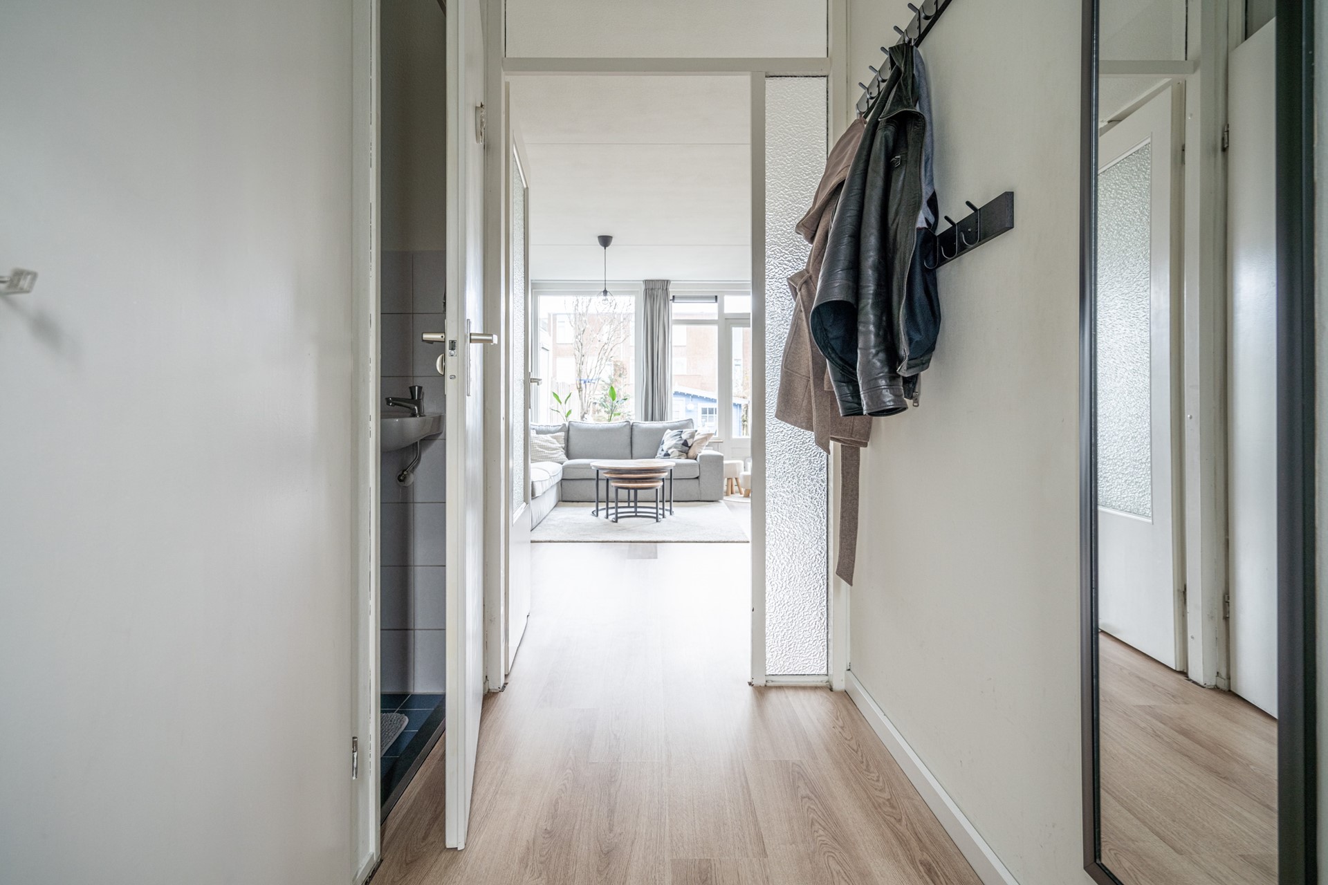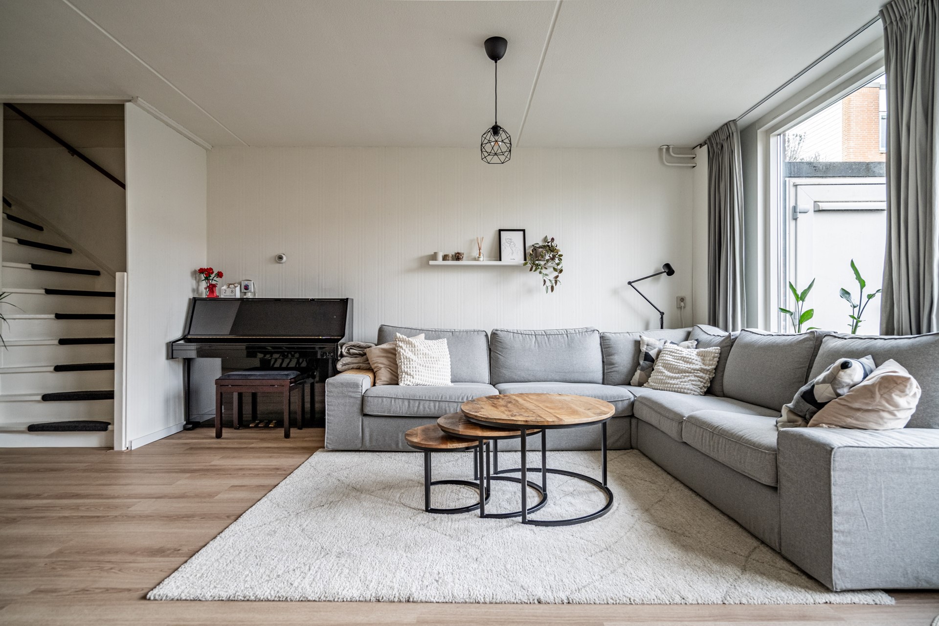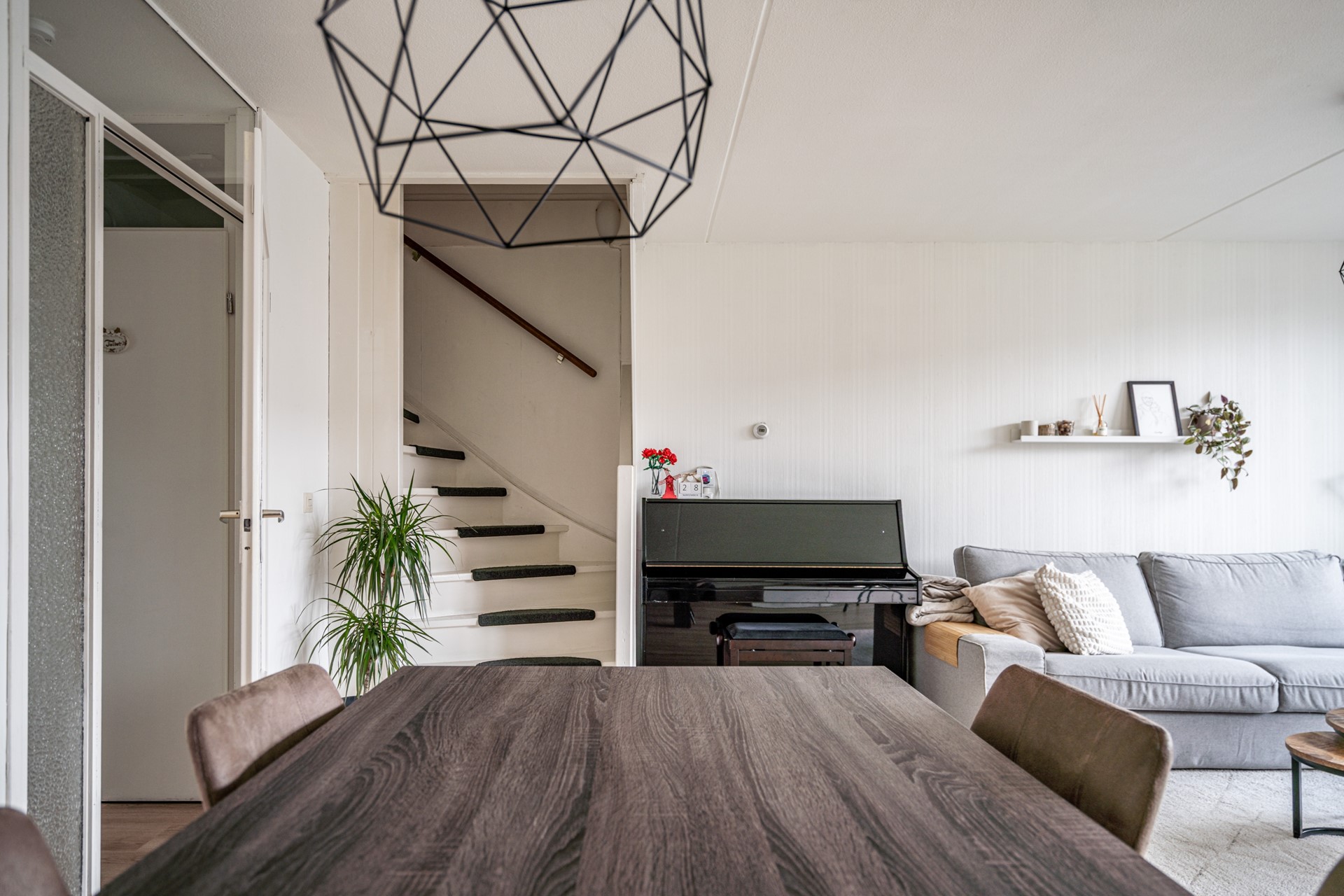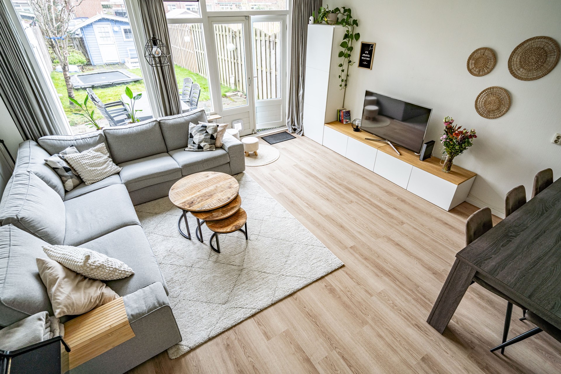 De woonkamer is ruim en licht door de grote raampartijen aan de achterzijde. Er is voldoende plek voor een zit- en eethoek en de open verbinding met de keuken zorgt voor een prettige leefruimte. De keuken is in 2023 volledig vernieuwd en voorzien van onder andere een vaatwasser, oven/magnetroncombinatie, inductiekookplaat, koelkast, vriezer, afzuigkap, spoelbak én een Quooker. Een praktische en moderne keuken waar alles binnen handbereik is.